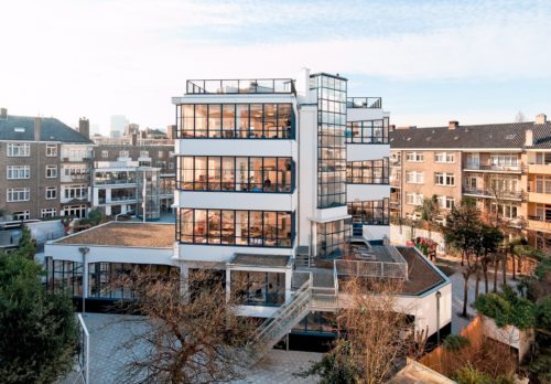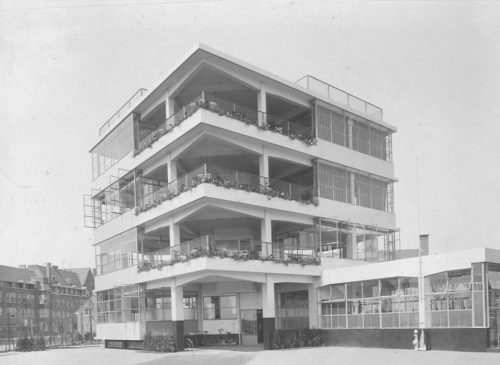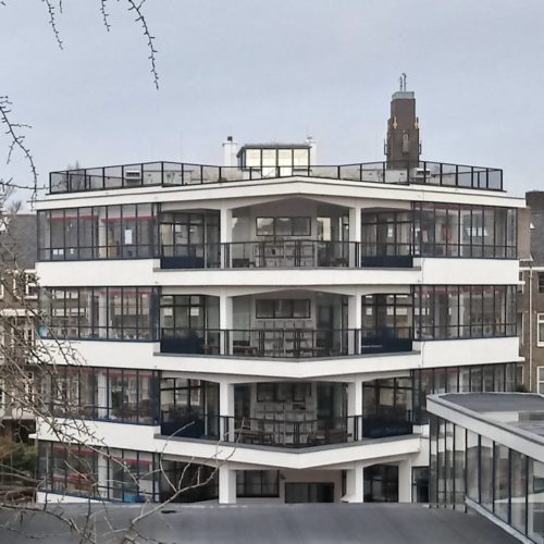 ヤン・デュイカーはコンクリートのフレームと薄いスチールフレームを窓に使い、ガラスを多用した。 パラペットもコンクリート製で、内側に断熱材が入っている。