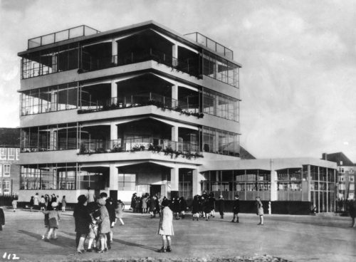 クリオストラートの野外学校は、主に田舎にあった一連の学校のひとつで、病気の子供たちのために、太陽の光と新鮮な空気の助けを借りて体力をつけることを目的としていた。 デュイカーは、健康な子供のための最初の屋外学校を、都市ブロックの中庭に設計した。 衛生的で、日光と空気が最適に入るという条件を満たすため、建築家は、オランダのモダン・ムーブメントである「ニューウェ・ブーウェン」の特徴的な作業方法である、最小限の構造にした。