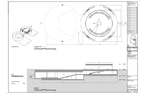 ルーフディスクは44枚の同じ放射状のパネルで構成され、現場で組み立てられ、1回のリフトで完成したガラスシリンダーの所定の位置に慎重に配置された。 電線管やスプリンクラー・パイプなどのすべてのサービスは、曲面ガラス・パネル間の薄いシリコン・ジョイントの中に見えないように組み込まれている。