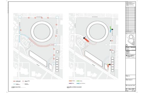 周囲1.6km、直径464mの26万m2のビルは、地上4階建てのオフィスと地下3階建ての駐車場からなり、そのうち700台には電気自動車用の充電ステーションが設置されている。