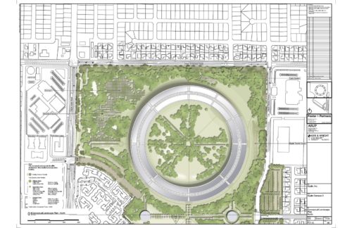キャンパスの表面積の80%が緑地である。 造園会社のオリン・スタジオと共同で、スティーブ・ジョブが数年前にコンタクトを取っていた樹木医のデビッド・マフリーが雇われた。 オリンは木の配置を決め、マフリーは樹種を選んだ。