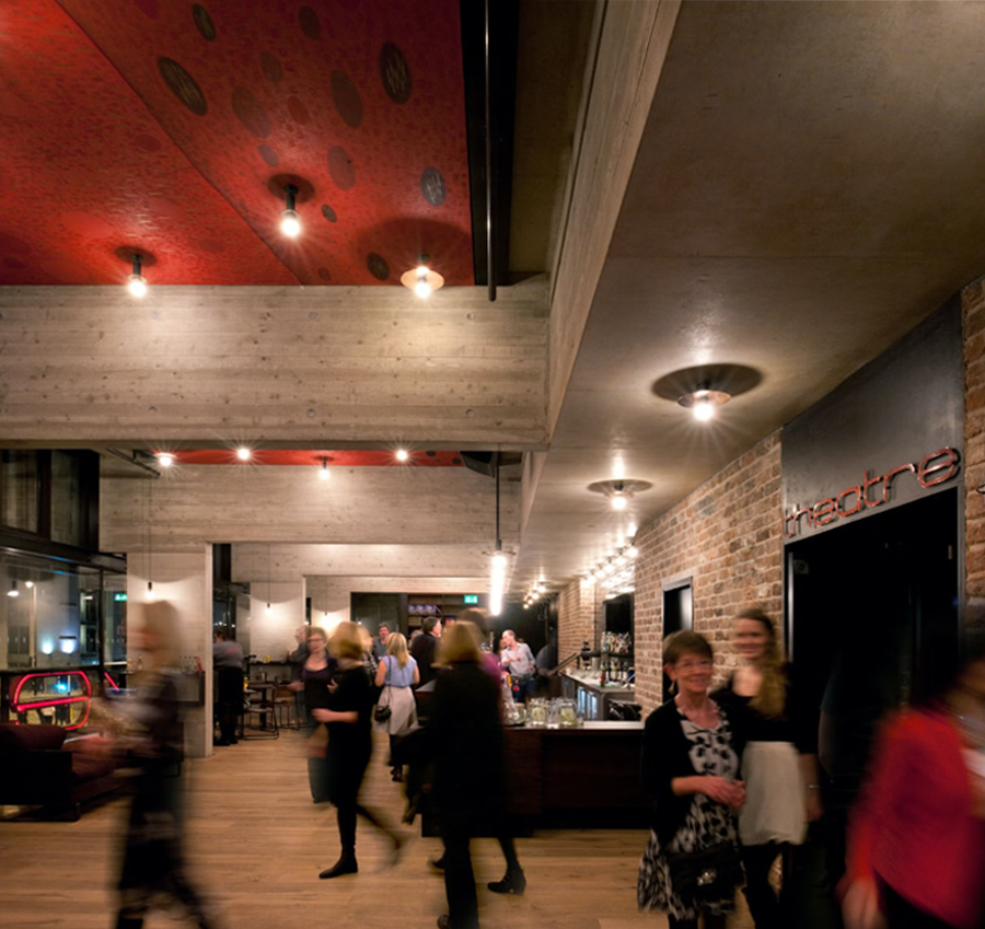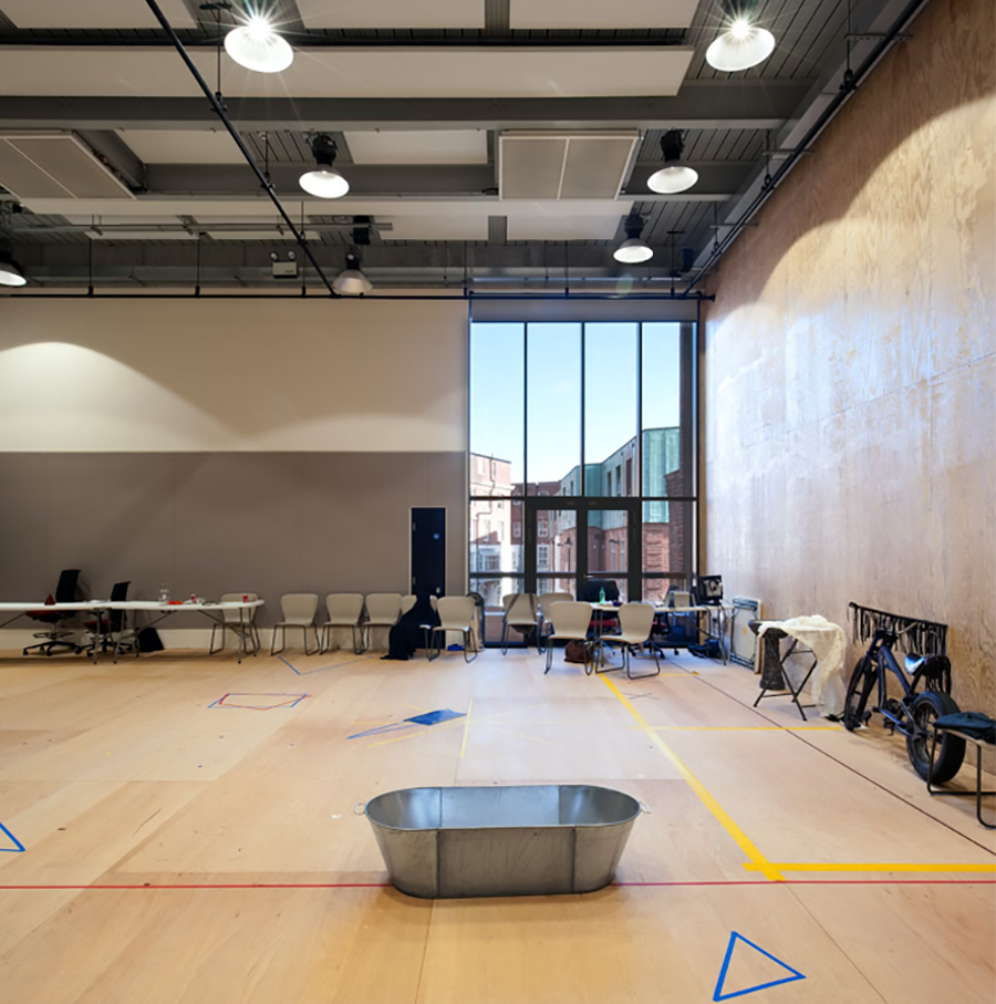 客席は、モジュラー・ステージとフレキシブルな座席を使い、さまざまな構成に変えることができる。 暖かさ、密度、親密さは、エブリマンの有名で異常に広いプレイエリアの再解釈とともに、スペースの全体的な目的である。