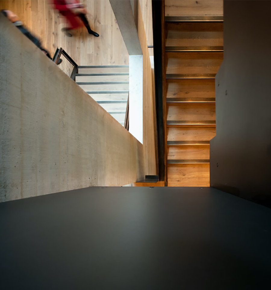 劇場の裏側は、オフィス、リハーサルスペース、ワークショップ、会議室、グリーンルームを相互接続し、創造的な仕事のためのひとつの環境として、パブリックエリアとまったく同じ配慮で設計されている。