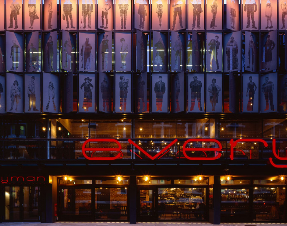 この劇場の公共の顔は、通りに面した西側のファサードで、リバプールの現在の住民を描いた等身大の肖像画が描かれた100枚以上の可動式金属製スクリーンで構成されている。 地元の写真家ダン・ケニオンとのコラボレーションにより、このプロジェクトは、新しい劇場に不可欠な要素として、地域社会のあらゆる分野から写真を提供することになった。