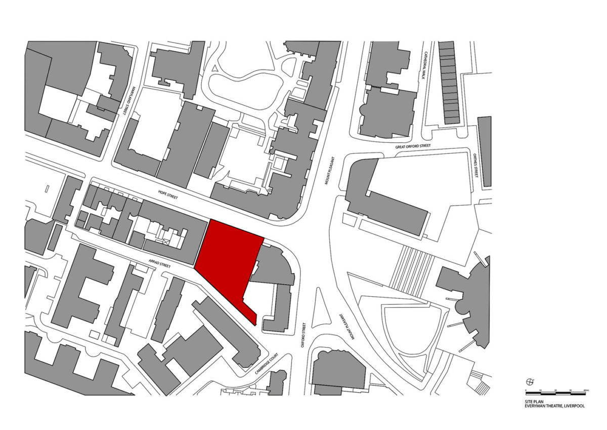 1837年にチャペルとして建てられ、当初はホープ・ホールと呼ばれていたこの建物は、1960年の改装を経てシネマ・シアターとなり、1970年代には再び改装を経て、多くの人々に愛される リバプール・エブリマン・シアターとなった。 その後40年間、この劇場は街のボヘミアン・ライフの拠点となり、多くの俳優のキャリアに重要な役割を果たした。 そこでリバプール&エヴリマン・シアター・トラストは、エヴリマン・シアターの改修と新施設の追加を求めるコンペをヨーロッパで開催した。