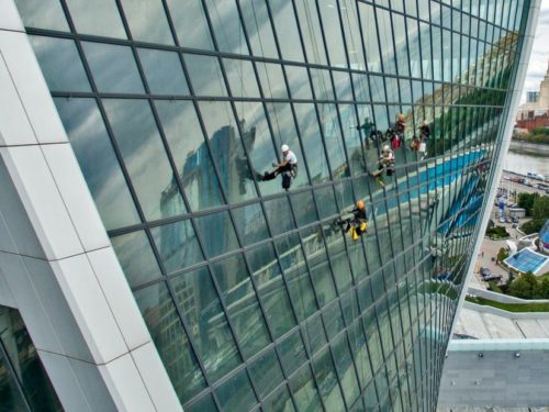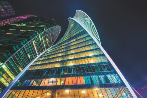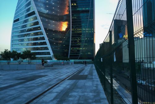 タワーの角には、垂直に対して約14°の傾斜をつけた連続したリボン状のグレージングがあり、水平線に対して90°の角度で反転したモスクワのパノラマを映し出し、見事な目の錯覚を生み出している。 この建築用ガラスは、日射取得を低減し、モスクワの厳しい冬の条件にも耐える優れた熱性能を発揮する。