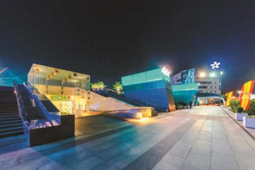 新しい多機能センターは2.5haの面積を占め、そのうち2haは、バグラチオン堤防と歩道橋から芝生、樹木、噴水、照明のある景観テラスの上層階へのアクセスを可能にする、高さ10mに達する儀式用階段を含む景観公共広場となっている。