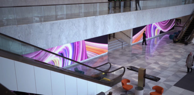 ビルの1階には、主にタワーに入居するテナントにオフィス資材を供給する小売店が多数オープンしている。