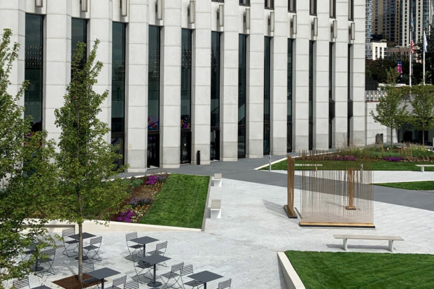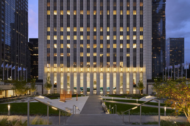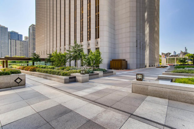 建物の周囲には、造園家エドワード・デュレル・ストーン・ジュニアが設計した2層の公共広場がある。 1974年、鉄道ターミナルをイリノイ・センターと呼ばれる複合都市開発へと変貌させる一環としてオープンした。