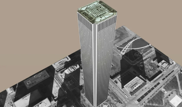 このビルは敷地の4分の1しか占めておらず、残りは2層からなる景観の良い広場となっている。今のところ、高さ300mを超える唯一の普通の箱型の建物で、アンテナや尖塔、頂部のない最も高い建物である。