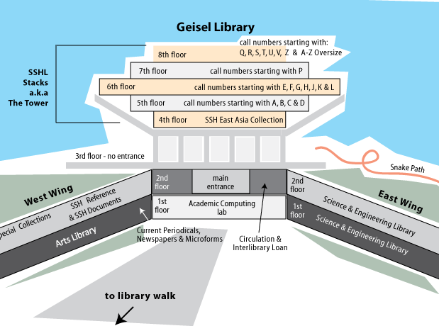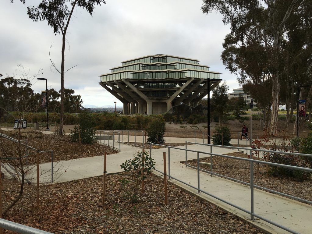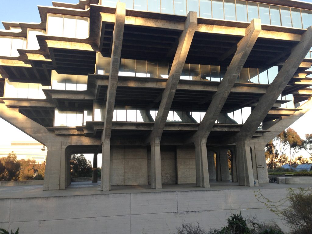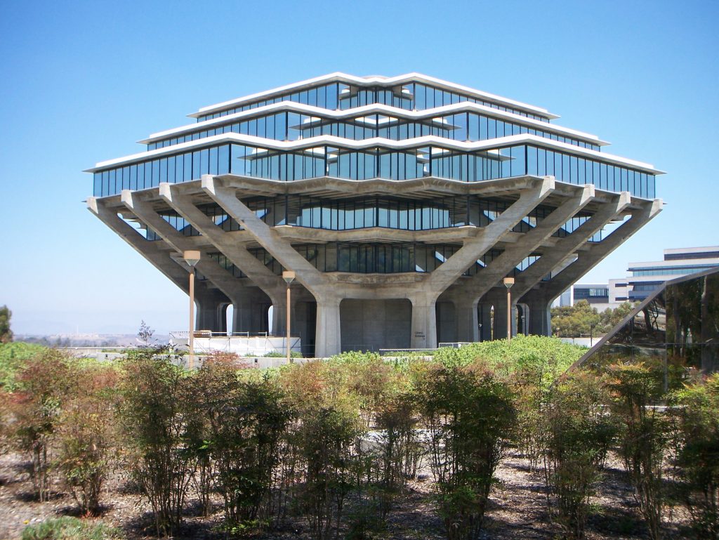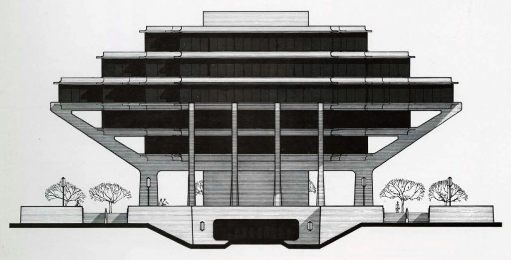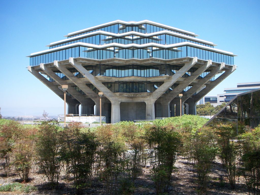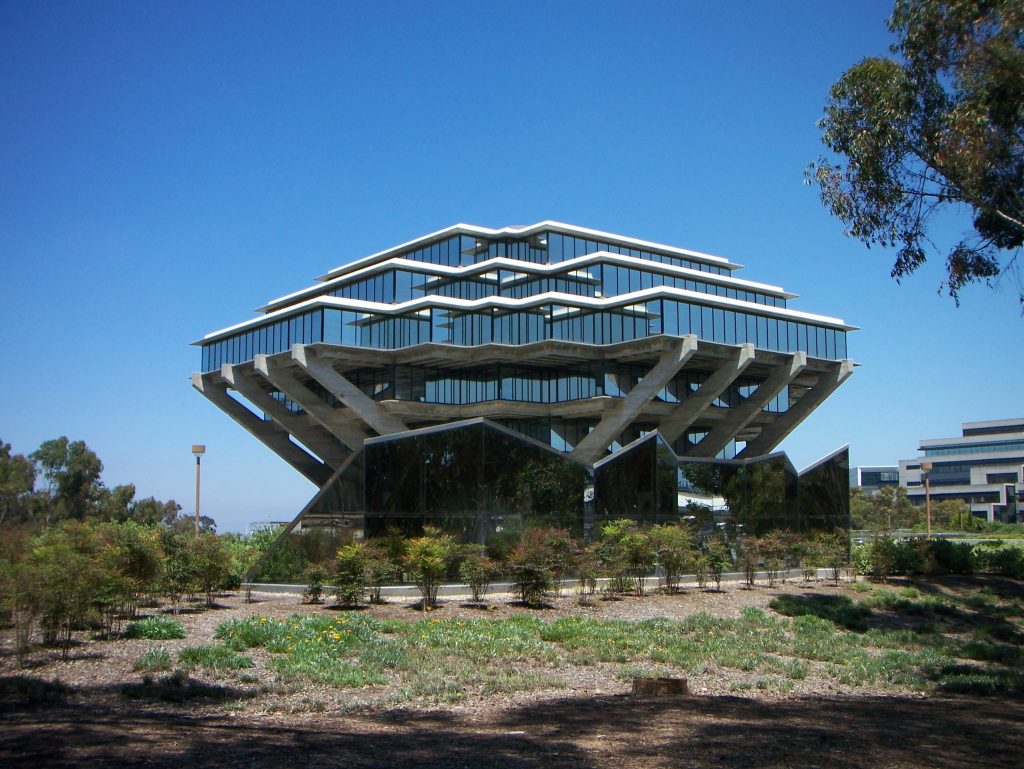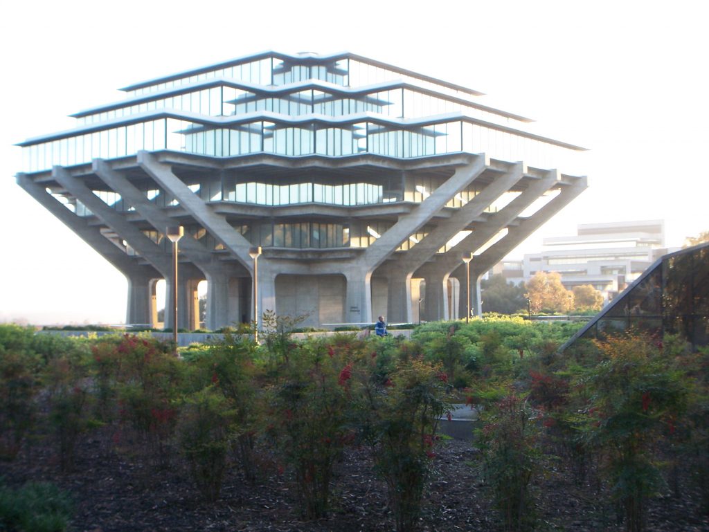 ガイゼル図書館は、サンフランシスコの トランスアメリカ・ピラミッドなど、宇宙時代にちなんだ未来的なデザインで有名な建築家ウィリアム・レナード・ペレイラによって1970年に設計された。 大学に9つある図書館のうち4つが入る学生図書館棟は、逆ピラミッド型で地上6階にそびえ立っている。 1995年、オードリー&セオドア・スース・ガイゼル夫妻(スース博士として知られる)が、図書館への惜しみない支援、2,000万ドルの寄付と彼のアーカイブの内容、そして識字率の向上に尽力したことが評価され、この名前が付けられた。
