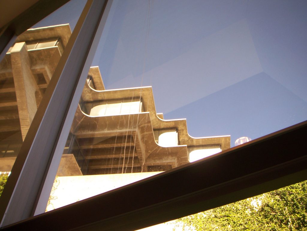当初の計画では、すべて鉄骨とガラスで構成される予定だったが、1970年代に鉄骨の価格が高騰したため、大学は鉄筋コンクリートを選択した。 コンクリートを使うことで、より彫刻的なデザインが可能になった。
