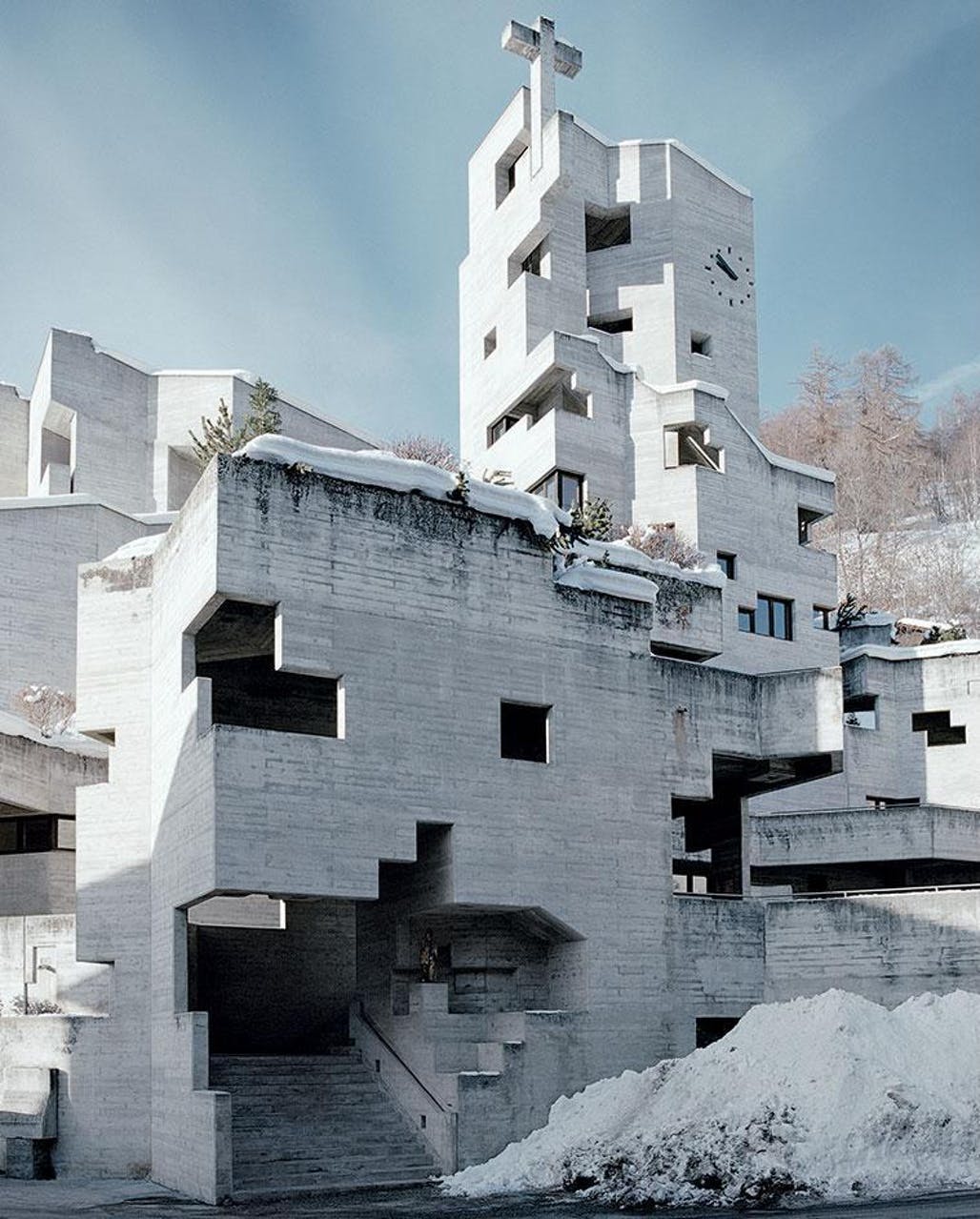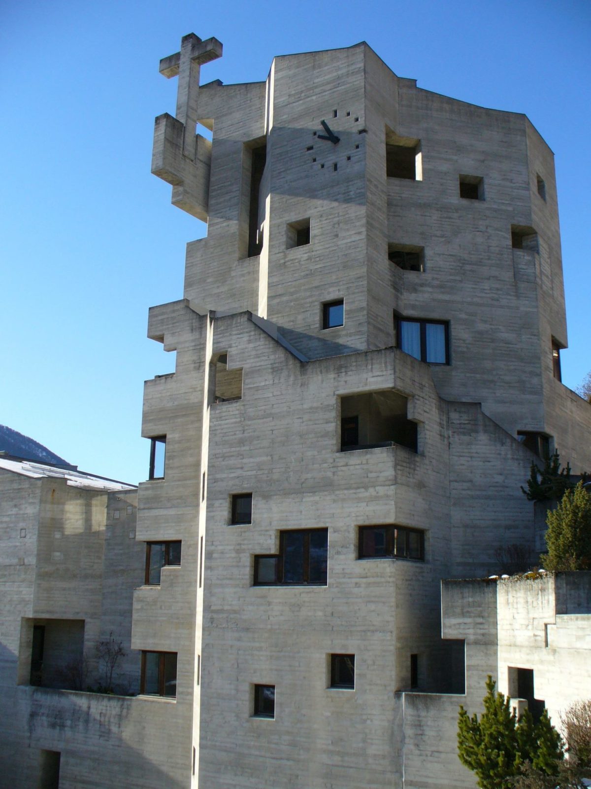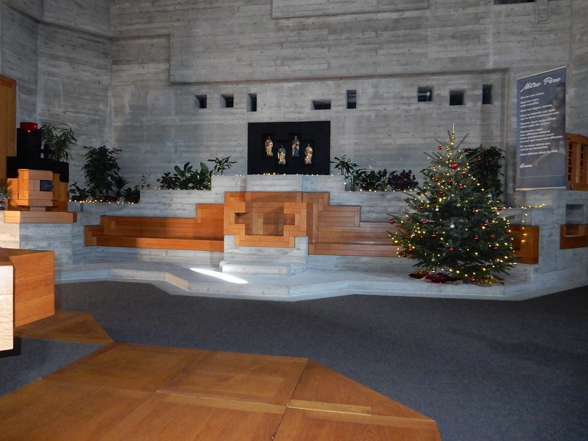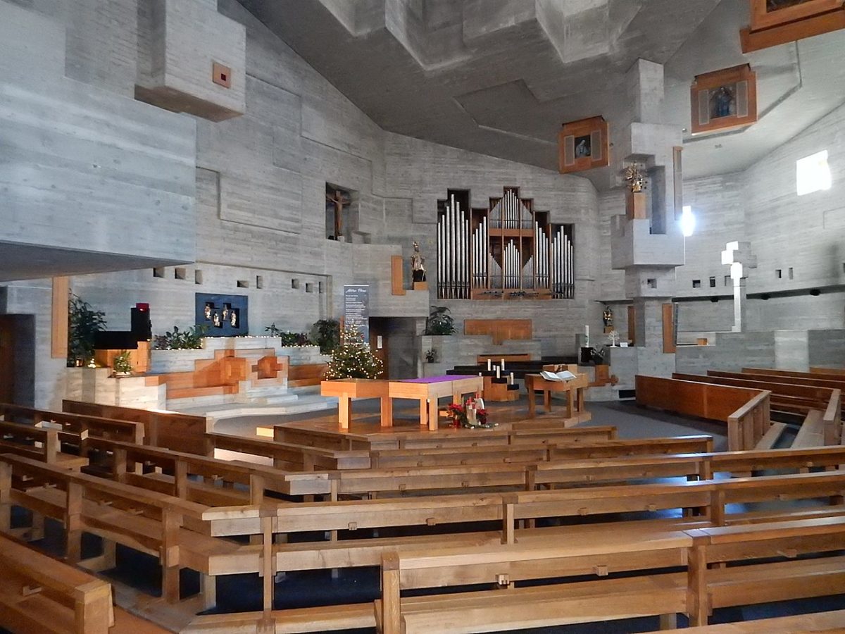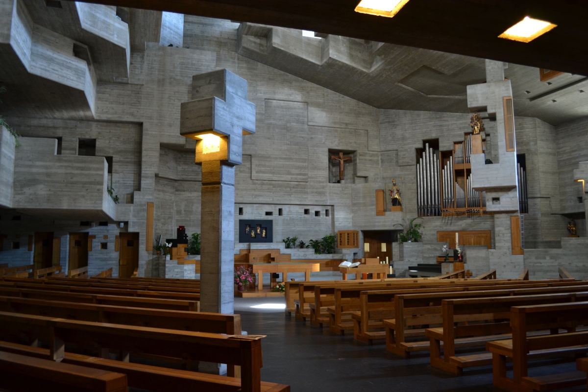 1960年代、ヴァルター・マリア・フェルデラーは スイスと ドイツで8つの教会を設計した。 ル・コルビュジエに影響を受け、さらにクルト・シュヴィッタースのコラージュやゴシック建築にも影響を受けたフェルデラーは、コンクリート・ブロックの滝や奇妙なトーテム・オブジェをデザインし、現在ではヨーロッパで最も前衛的な宗教建築のいくつかを形成している。 今日、この素晴らしい建物は、スイスの国家的重要文化財のひとつとなっている。