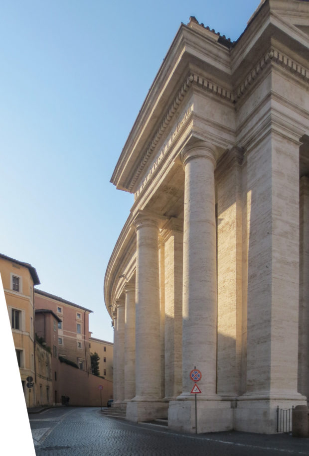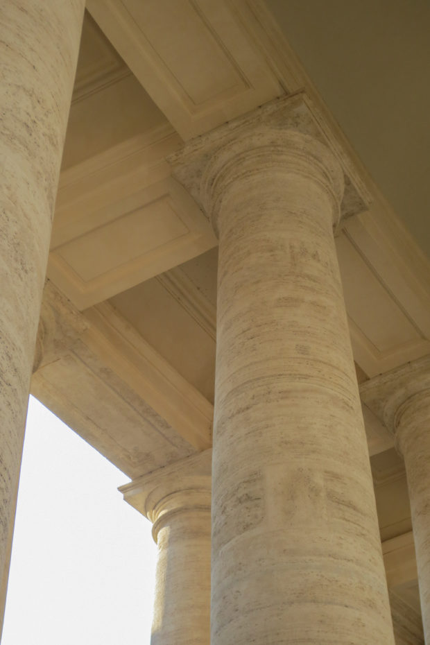 ふたりはポルティコ(ギリシャ・ローマ時代の都市に典型的な、風雨から身を守るための優雅な構造)を作るプロジェクトで協力した。 古典建築へのオマージュが、列柱をローマ・バロックの最も地味な例にしているのだ。