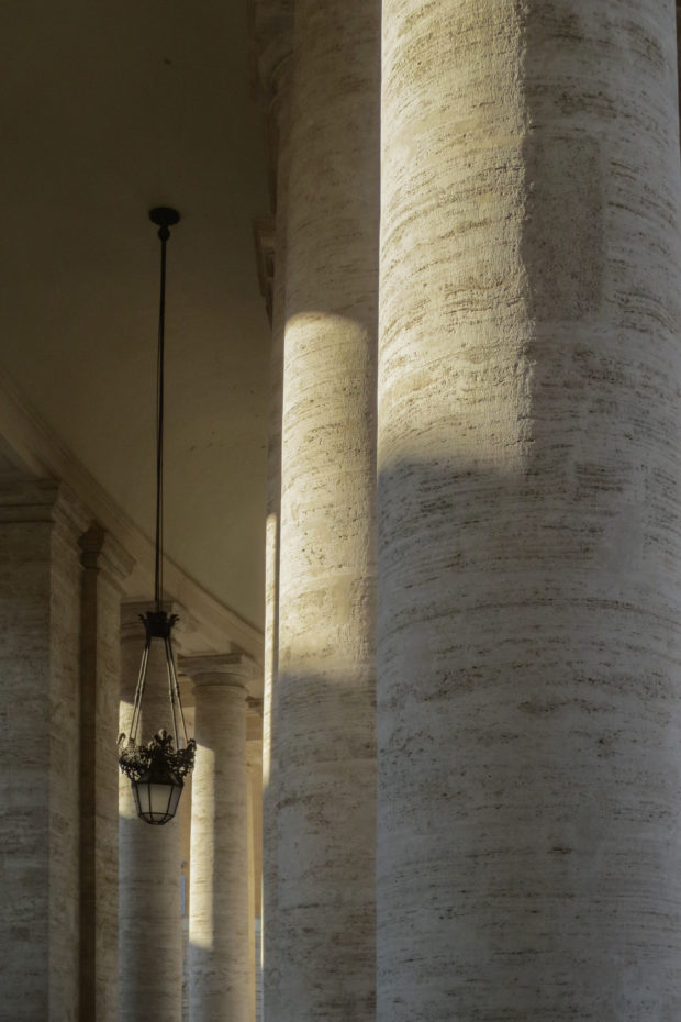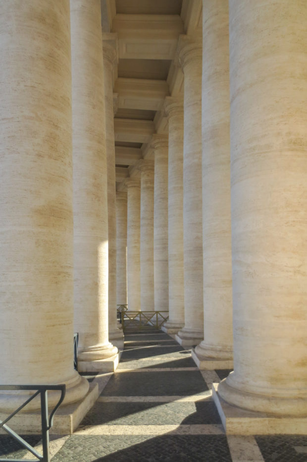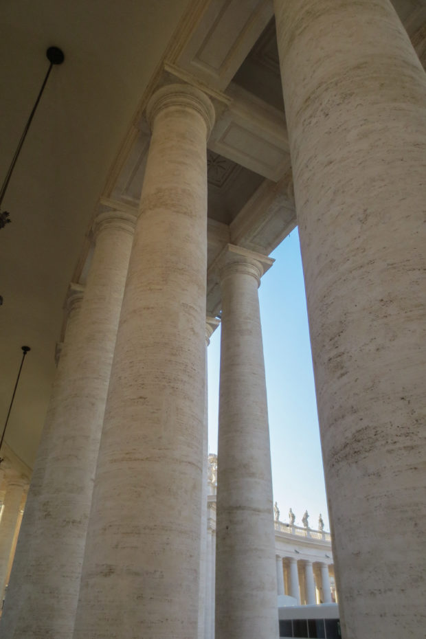 列柱は284本の高さ16mの大柱と88本のピラスターで構成されている。 柱がシンプルなのは、見る者の視線をバシリカの正面に向けるためだ。 サン・ピエトロ大聖堂の空間と構造は、反宗教改革の建築の一例である。