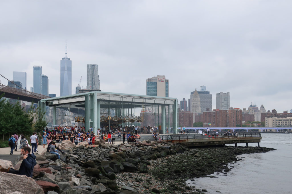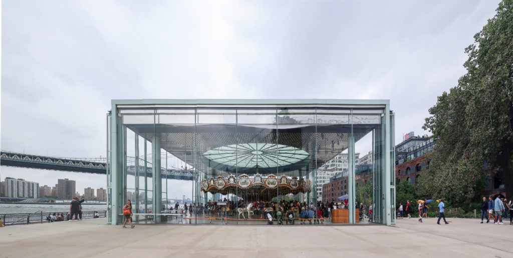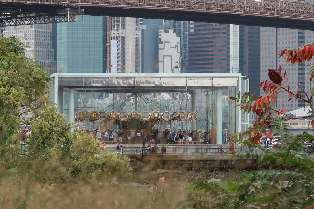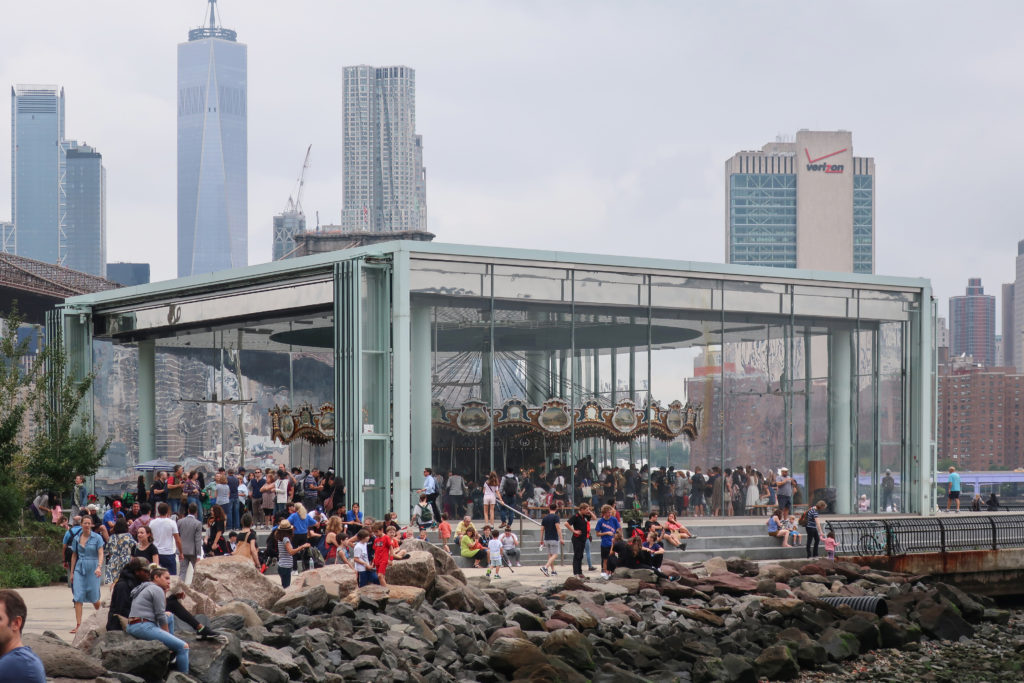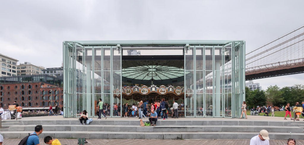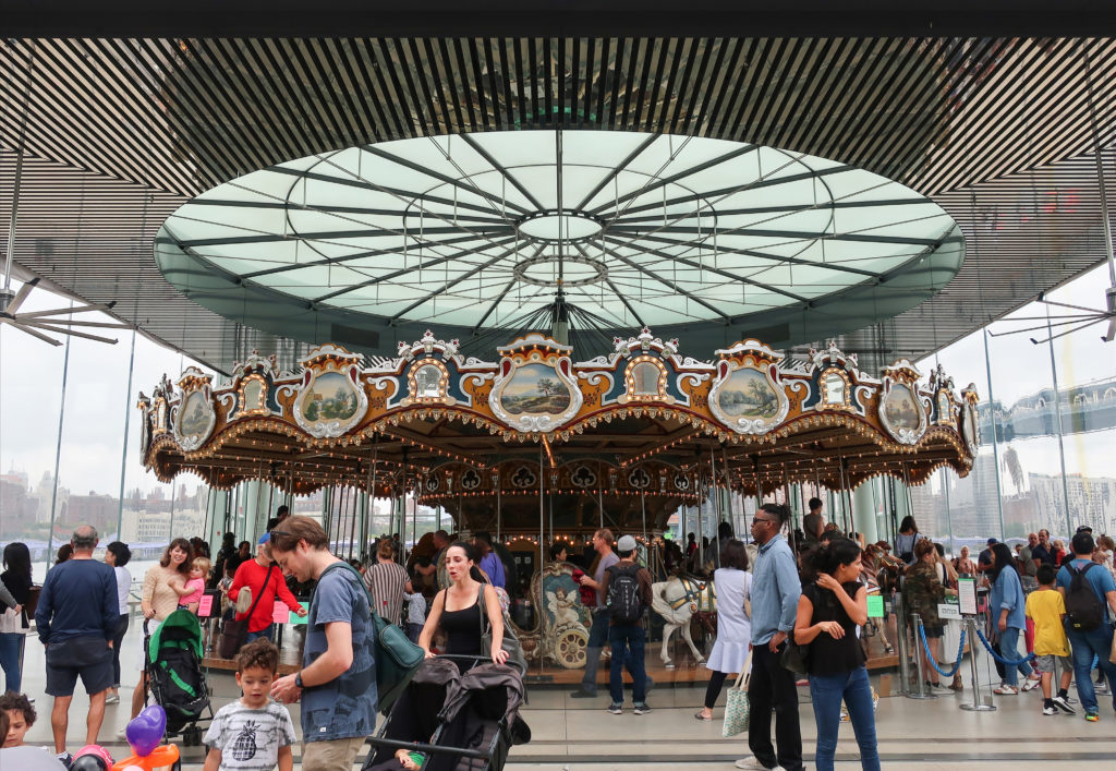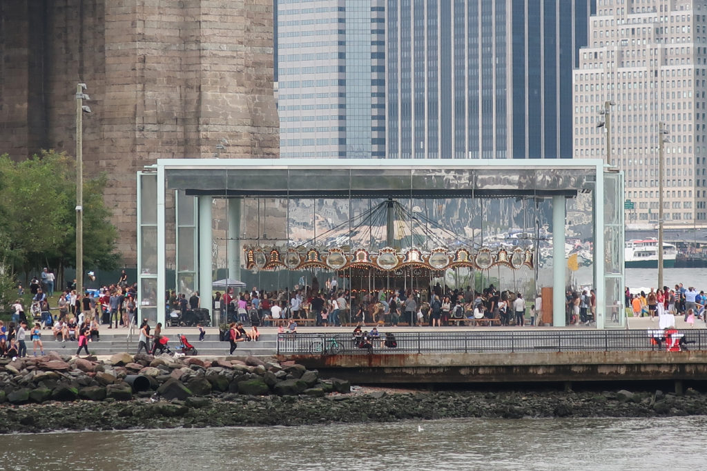 回転木馬の敷地はかつて産業活動が盛んな地域であったが、ブルックリン橋のウォーターフロント35ヘクタールの再開発計画が持ち上がるまで、長年放置されていた。 PlaNYCとVision 2020の市長アジェンダの一環として、市のウォーターフロントが注目されている。 5つの郡全体を通して、沿岸の生態系や十分に利用されていない地域を再生し、回復させようとする意識的な取り組みが行われている。 メリーゴーランドのあるエンパイア・フルトン・フェリー州立公園もそのひとつだ。 テーマパークの乗り物は、以前は放棄されていた都市構造の社会的活性化装置となることで、この広い構想に不可欠な役割を果たしている。