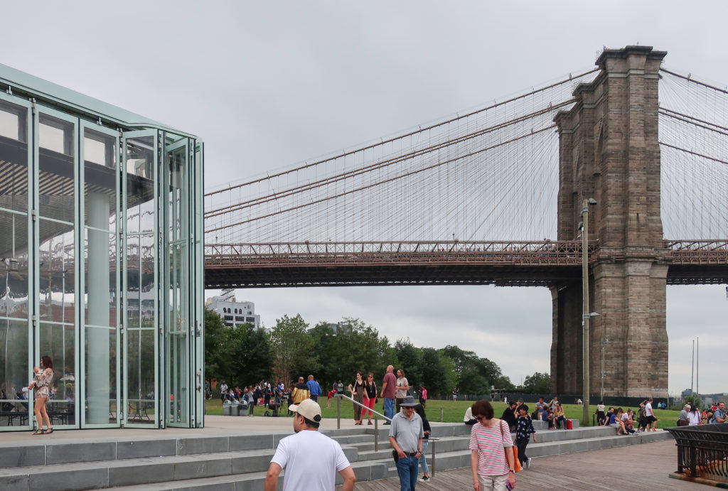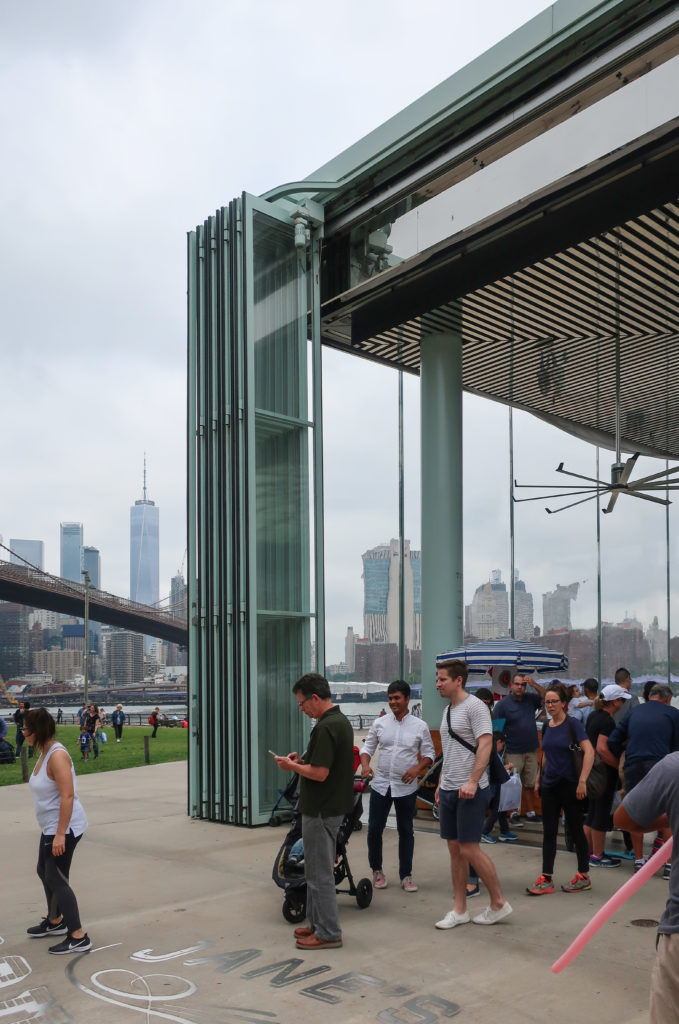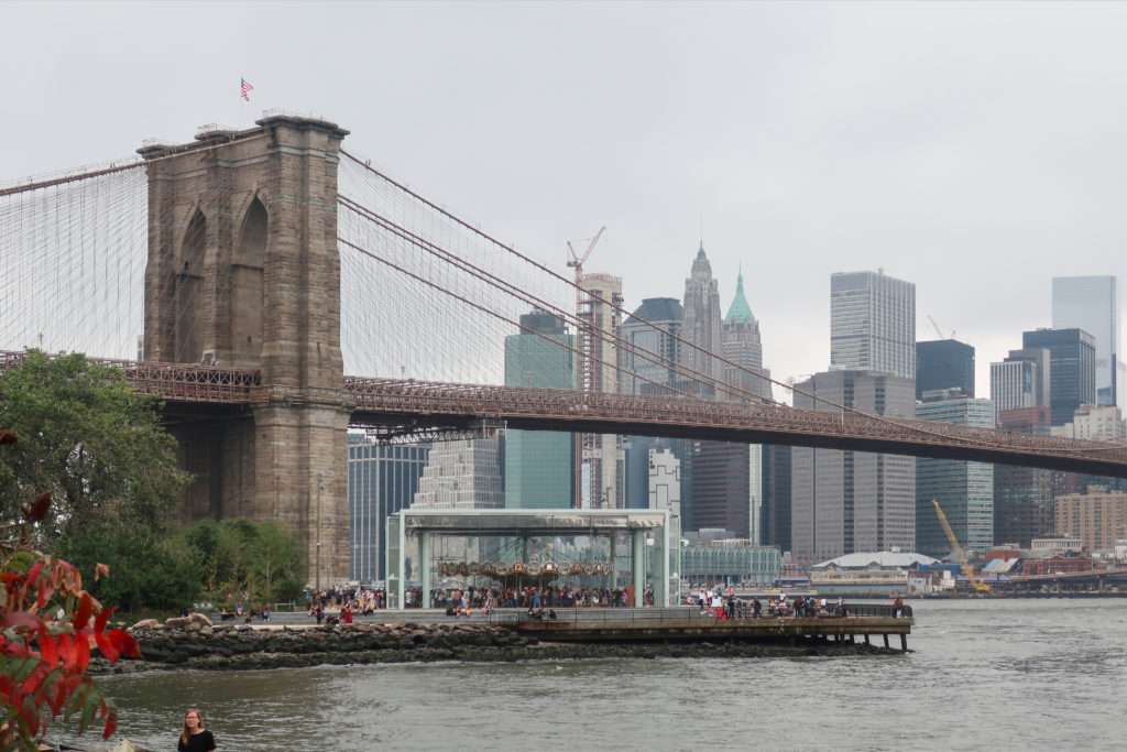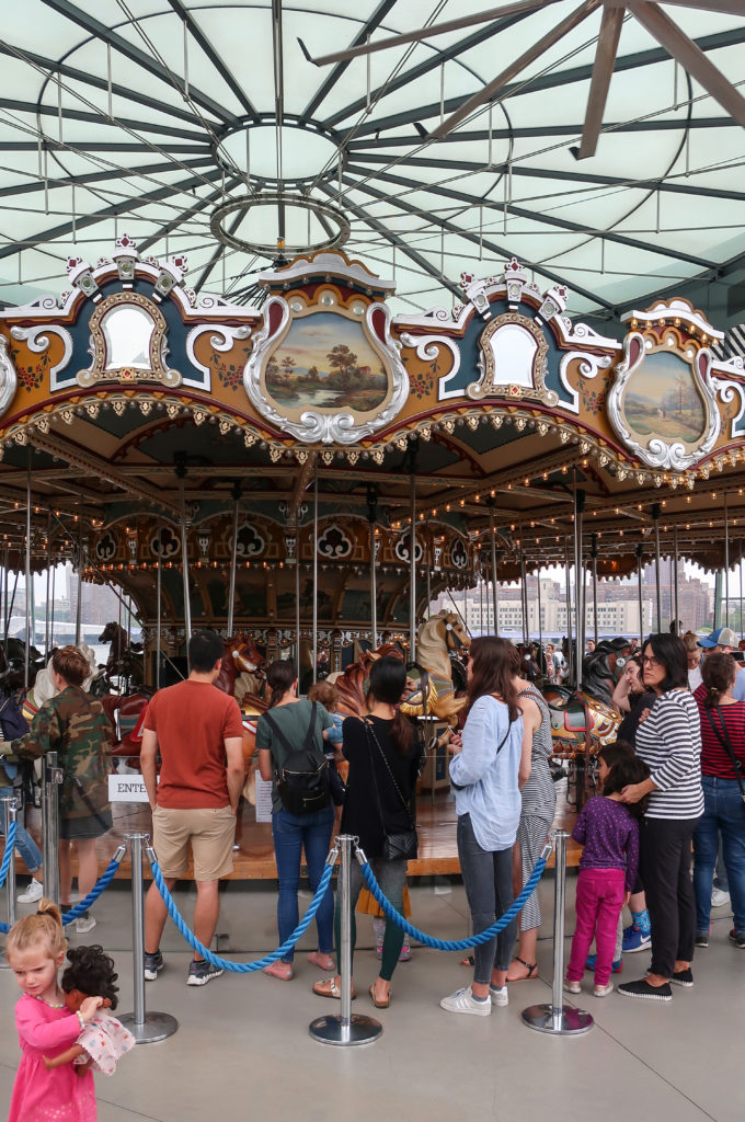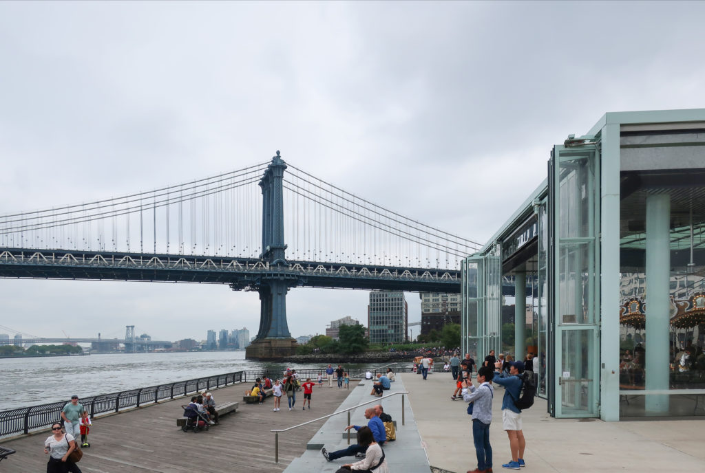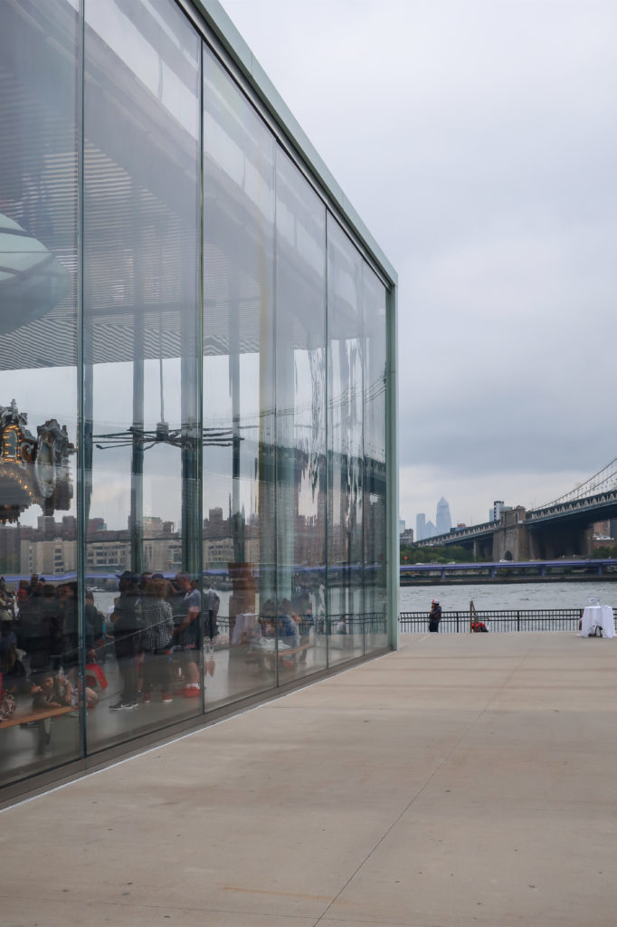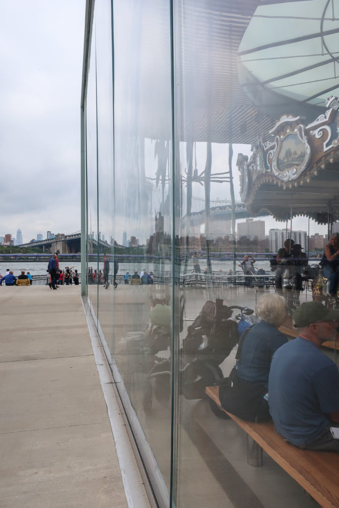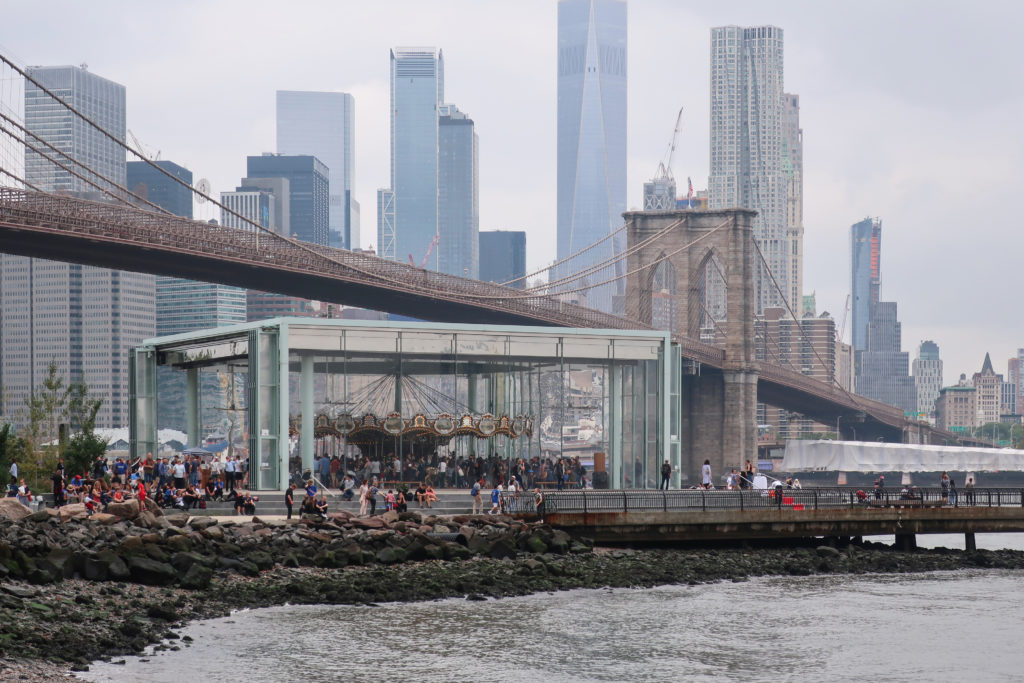 このメリーゴーランドは、ブルックリン・ブリッジ・パークのエンパイア・フルトン・フェリー地区にあり、ブルックリン橋の石畳の桟橋とマンハッタン橋の細い鋼鉄の桟橋の間、イースト・リバーからわずか数メートルのドック・ストリート45番地にある。 ここはDUMBO(ダンボ)と呼ばれ、Down Under The Manhattan Bridge Overpassの略である。