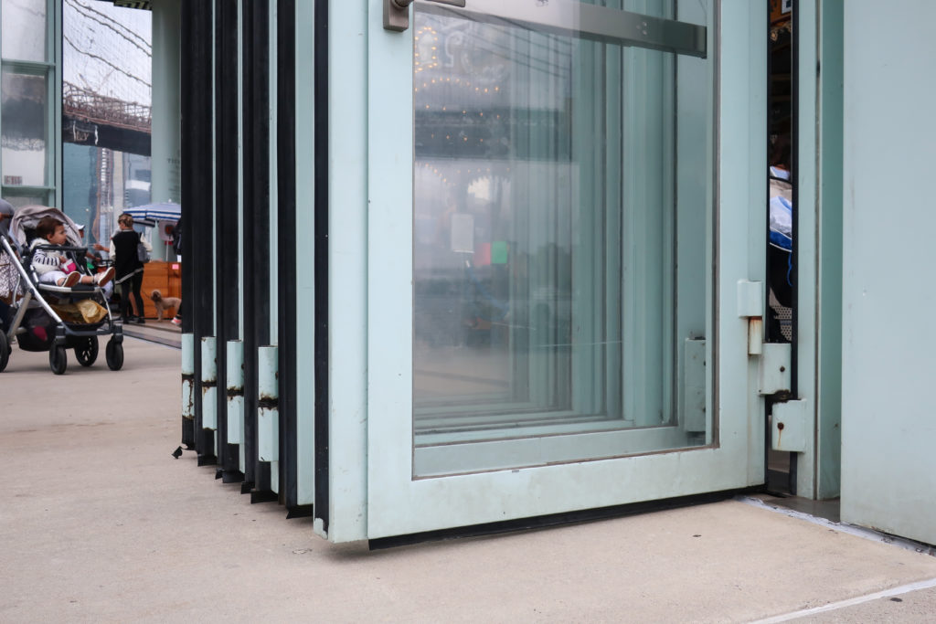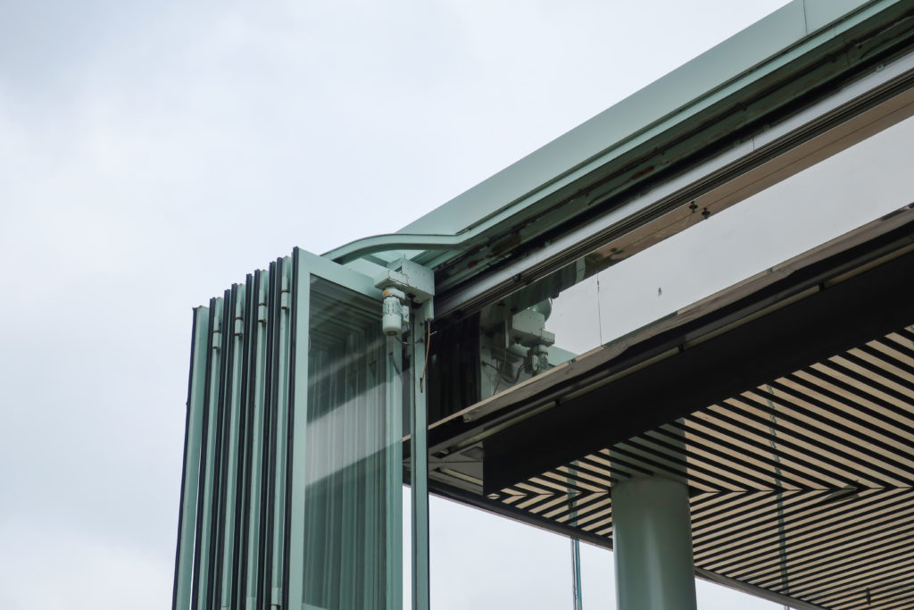 開閉可能なファサードは、スチールとアクリルの折れ戸で開閉する。 ファサードには18のドアがあり、9つずつ2つのグループに分かれ、中央から両サイドに向かって開く。 ドアは床に埋め込まれたトラックの上にあり、4つの異なる位置で開くようにプログラムされている。