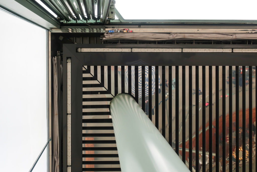 屋根の天窓は、回転木馬の支柱とケーブルの構造にヒントを得て、ケーブルとスチール構造で支えられた断熱ガラスでできている。