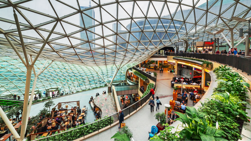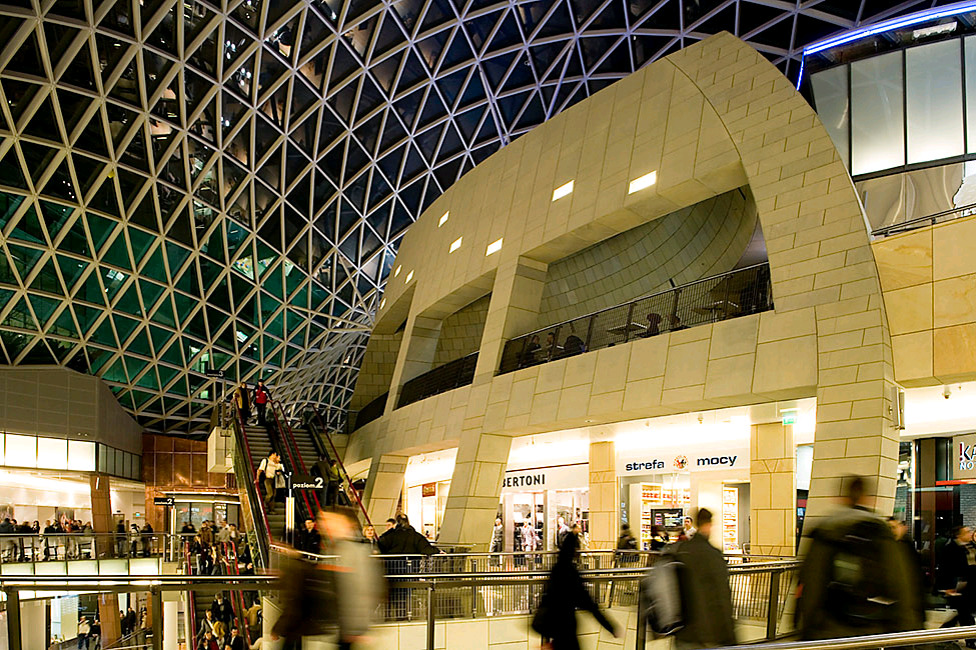 三方が道路、四方が鉄道駅という敷地面積の制約が、垂直構造の開発につながった。 バスケット編み」の回遊プランが織り込まれ、立体的なアニメーションの渓谷として設計されたズロテ・タラシーは、自然と商業施設、エンターテインメントが融合している。