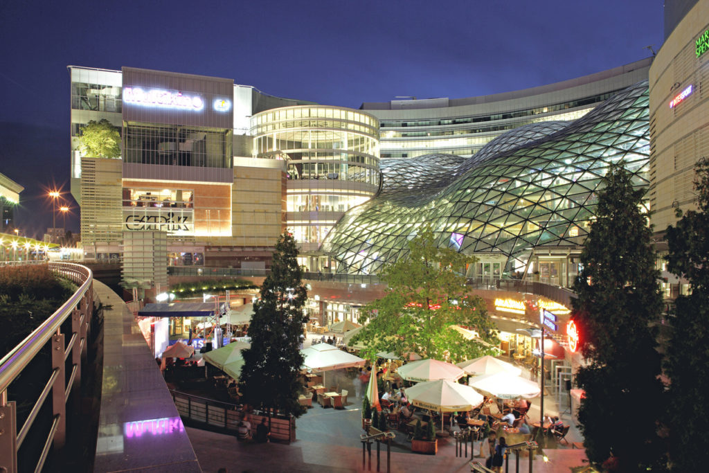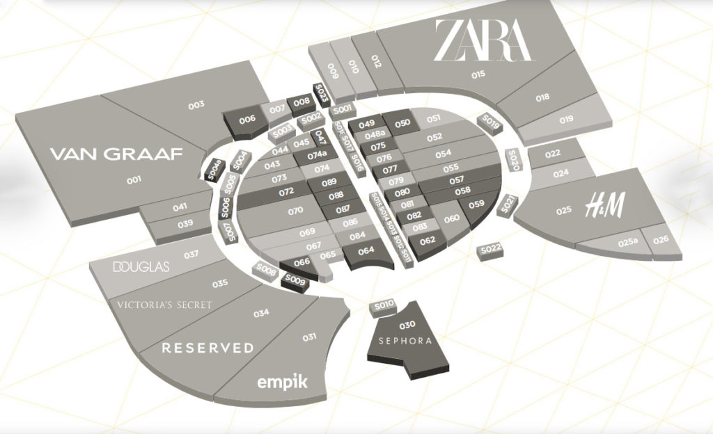 このショッピングセンターには、ポーランド初のハードロック・カフェ、バーガーキング、スターバックスがある。 また、1600台収容可能な地下駐車場もある。