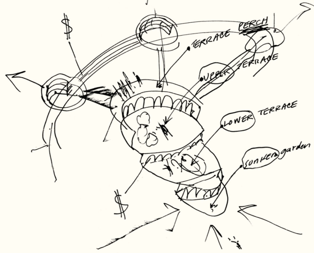 擁壁のコストを最小限に抑えるため、アラップは最も深い掘削を敷地の中央にとどめた。 スラブは、重要な北端と南端、そして西側の外周に沿って、より高いレベルに保たれた。 その結果、下部スラブにはいくつものひだができ、エレベーターシャフトや低層階部分の必要性によってさらに複雑なものとなった。