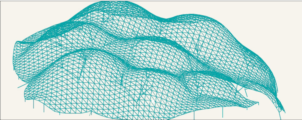 ズロテ・タラシー・センターは、10,500m²のフリーフォームのガラス屋根によってワルシャワの気候から守られている。 この複雑な問題を解決するため、アラップのエンジニアはアラップの特別なソフトウェアを使用し、複数の国から同時に迅速に作業することを可能にした。また、このプロジェクトの主な建築的野望である、屋根全体が均等な大きさのピースで構成された均一なメッシュのように見えることを実現した。 その結果、奥行き200mm×幅100mm、肉厚は5mmから17.5mmまで、各部材にかかる力に応じて変化する一定の大きさの長方形中空鋼管(RHS)からなる連続した三角形のグリッドができあがった。 最終的に、2,300の節点、7,123のRHS部材、4,780のガラスパネルがそれぞれ固有の形状を持つことになった。