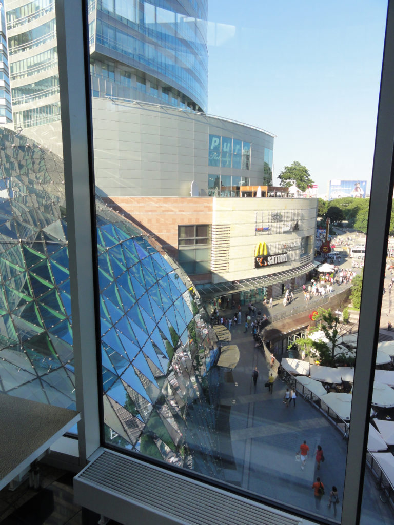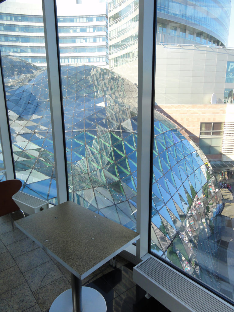 吹き抜けの空間は楕円形をしており、その周囲を走る通路のメインラインによって強調されている。 すべての商業エリアとレストランはアトリウムの北側にある。 南側のテラスは、北に向かって後退する歩道によって縁取られ、カスケード状のテラスを形成し、そのテラスは、北から南に向かって細くなるガラス張りの屋根に覆われた、低層の広いエリアに面している。