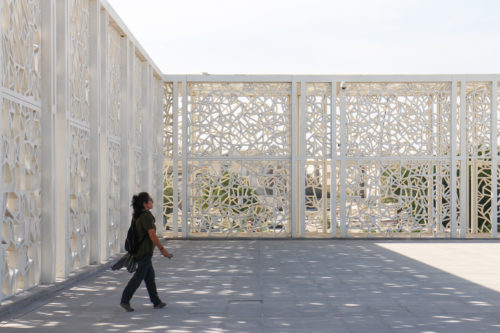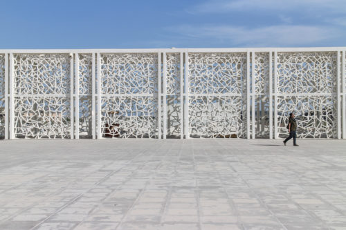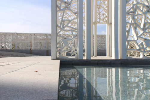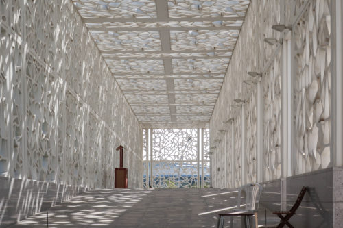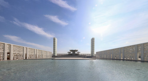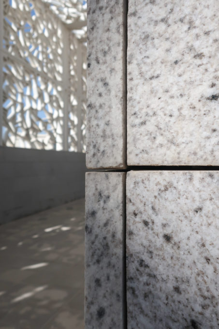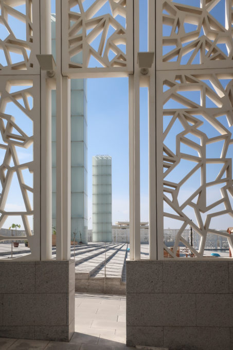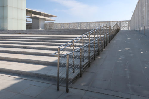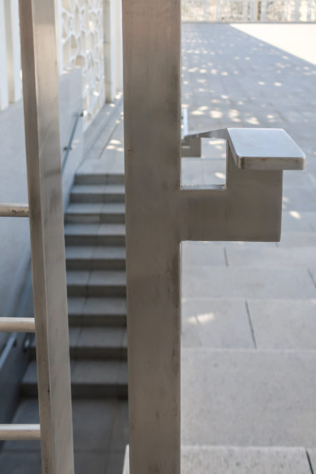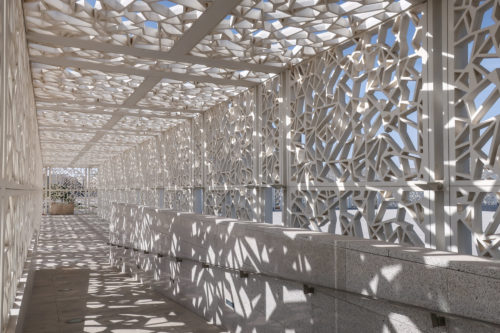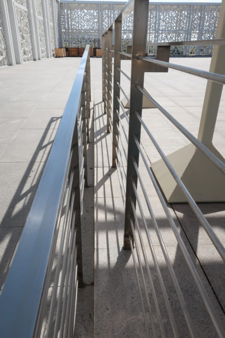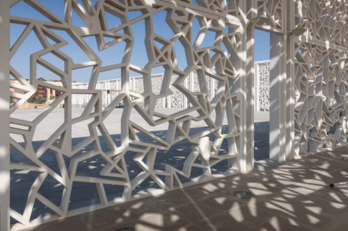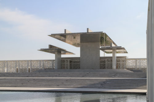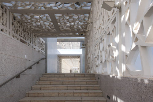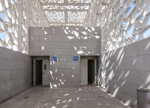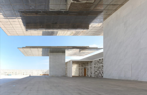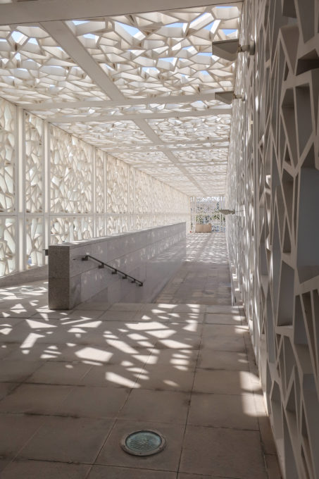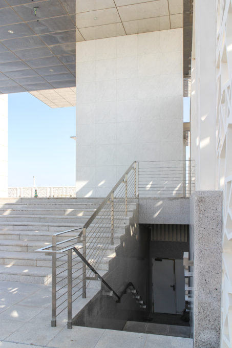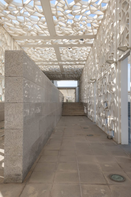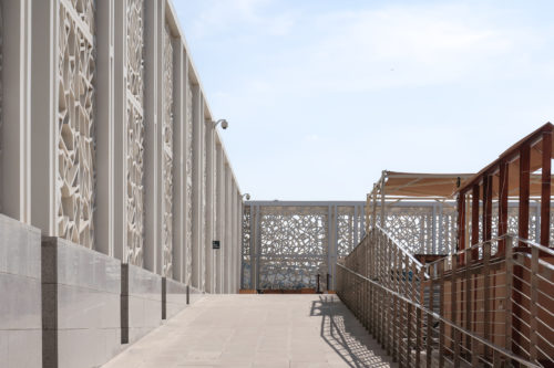 これらのステージは、コンサート、プレゼンテーション、会議、セレモニーなどに使用でき、より親密なサイドギャラリーとの美的連続性を生み出すのに役立つ。 半屋根で覆われた側廊は祈りの場であり、大きな外側のエスプラネードを三方から取り囲んでいる。 一方は女性用、もう一方は男性用である。