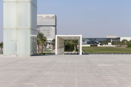 建築家の磯崎新氏が設計したセレモニアルコートは、印象的な屋外スペースで、カタール教育シティのコミュニティに、正式な式典にも屋外パフォーマンスにも使える会場を提供する。 このプロジェクトは、ナショナル・コンベンション・センターに次いで、日本人建築家による2番目のプロジェクトである。