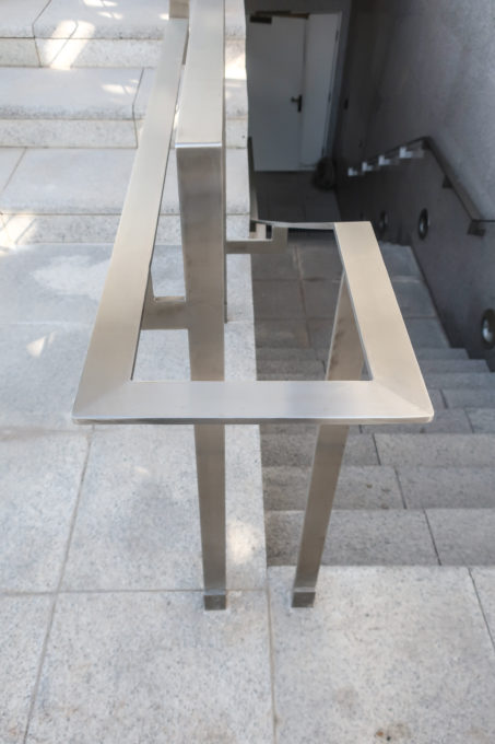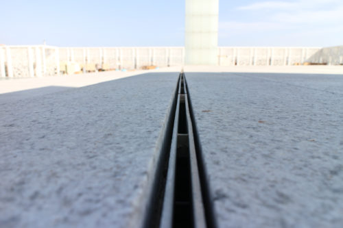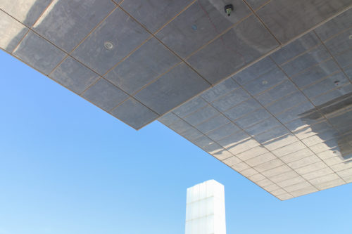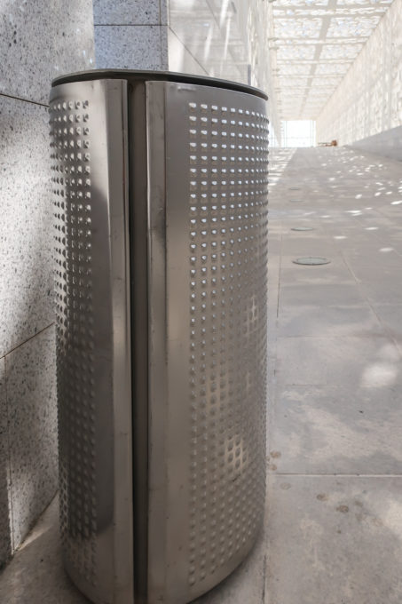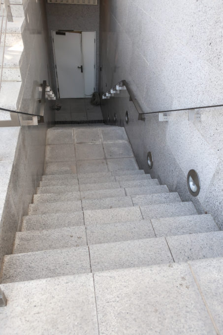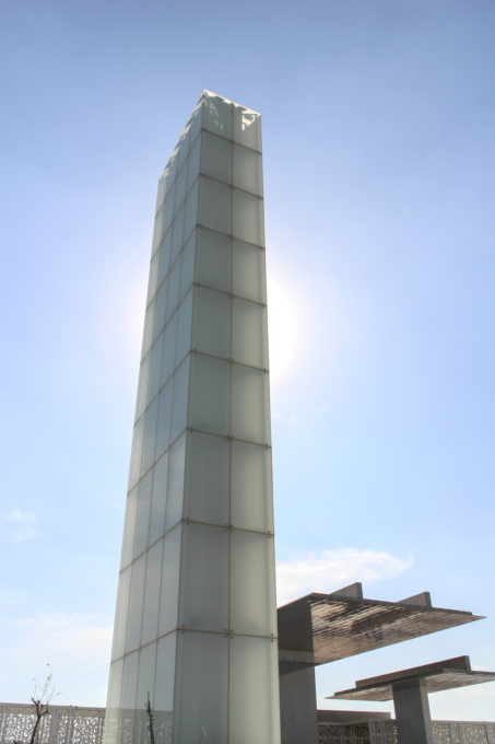 このエリアのもうひとつの見どころは、上下の中庭の高低差にある高さ30mの2つの照明塔である。