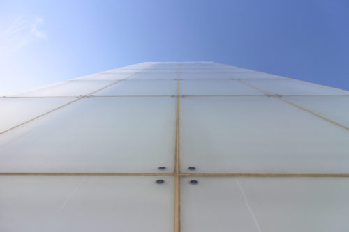 2つの照明塔は白い不透明ガラスで覆われ、長方形の形をしている。
