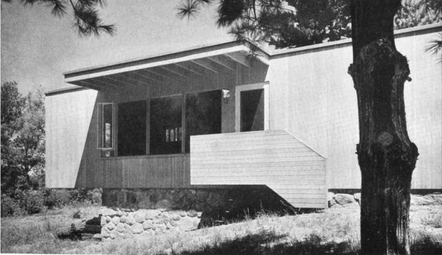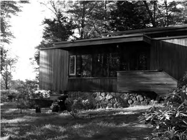 建築家マルセル・ブロイヤーは、チェンバレン家から9ヘクタールの土地にコテージの設計を依頼され、リンカーンにある建築家の自邸にあるような車寄せを建てることになった。