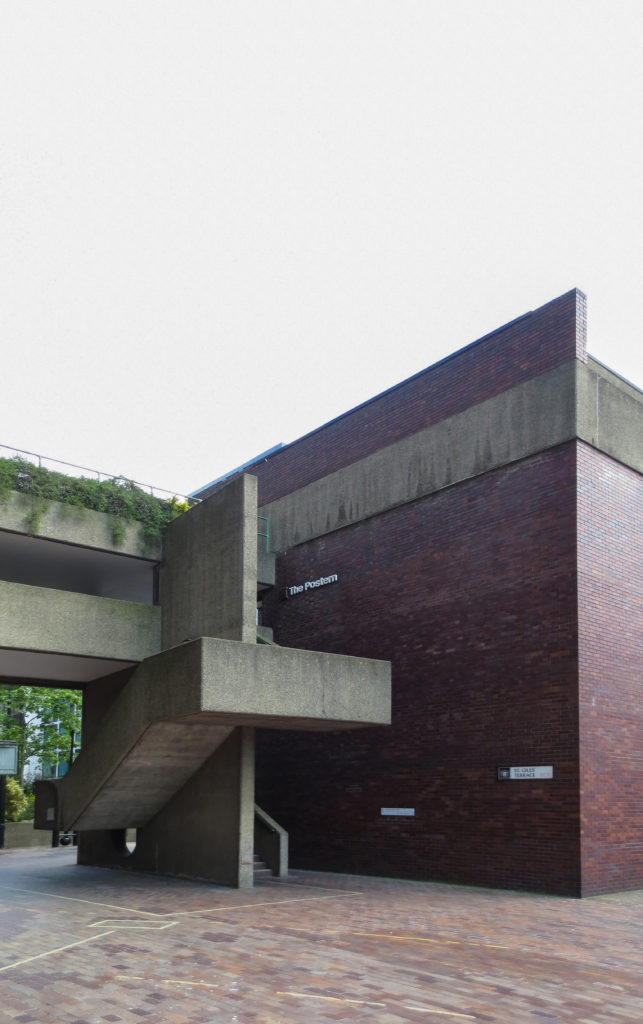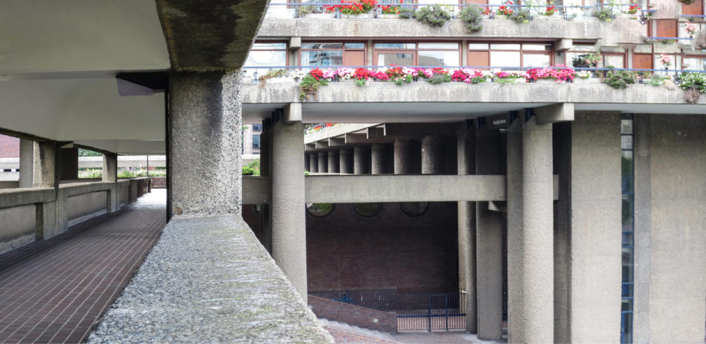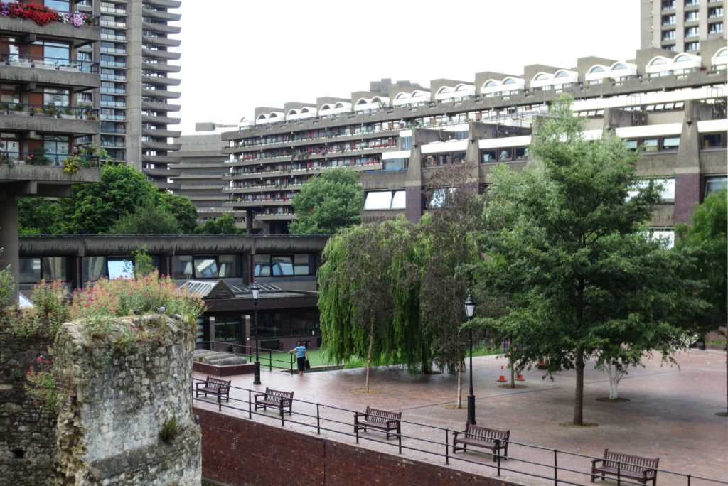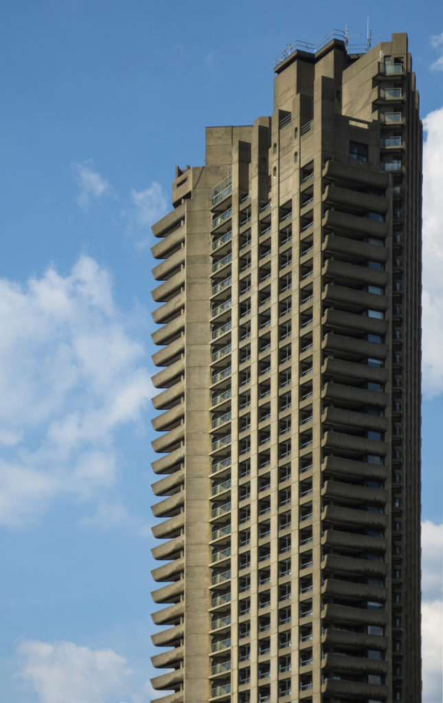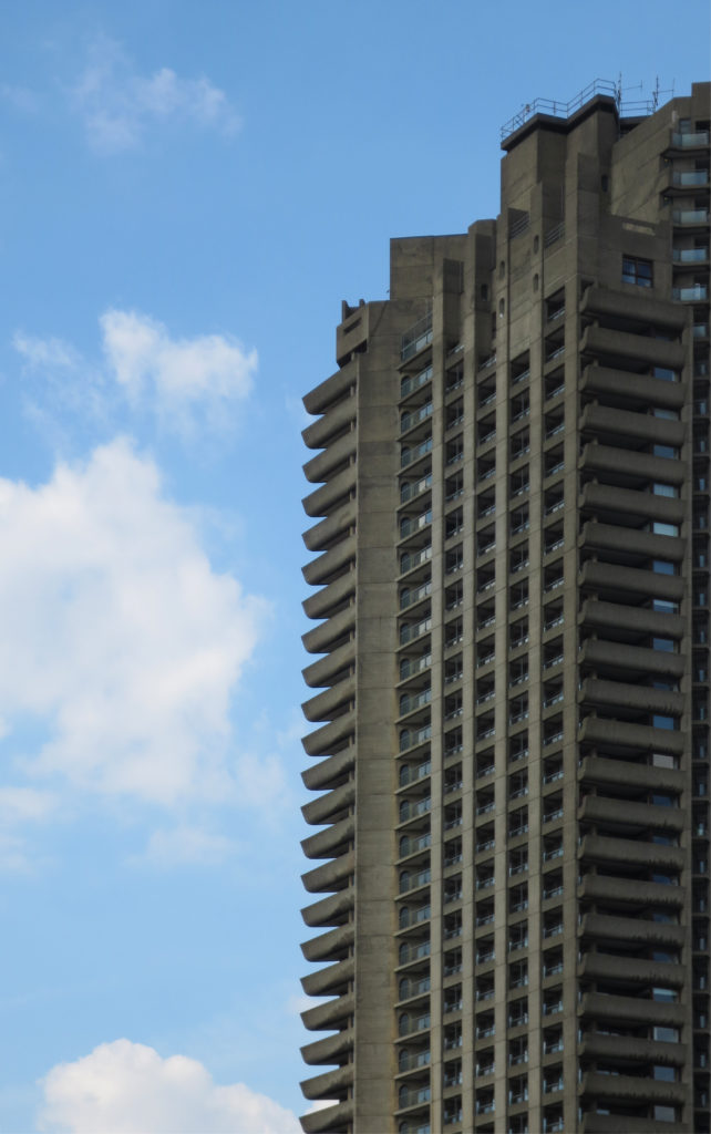 バービカンは、第二次世界大戦(ブリッツ)の爆撃で荒廃したロンドンの一帯を変えるというユートピア的な構想の一環として、建築家チェンバリン、パウエル&ボンの設計から発展した。 建築家たちは、建物や都市の住まい方に根本的な変革を提案する機会をつかんだのだ。