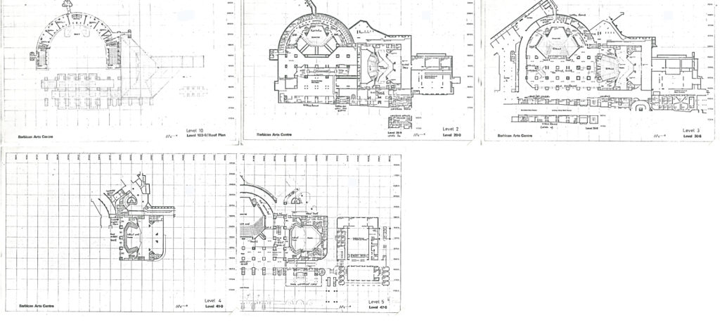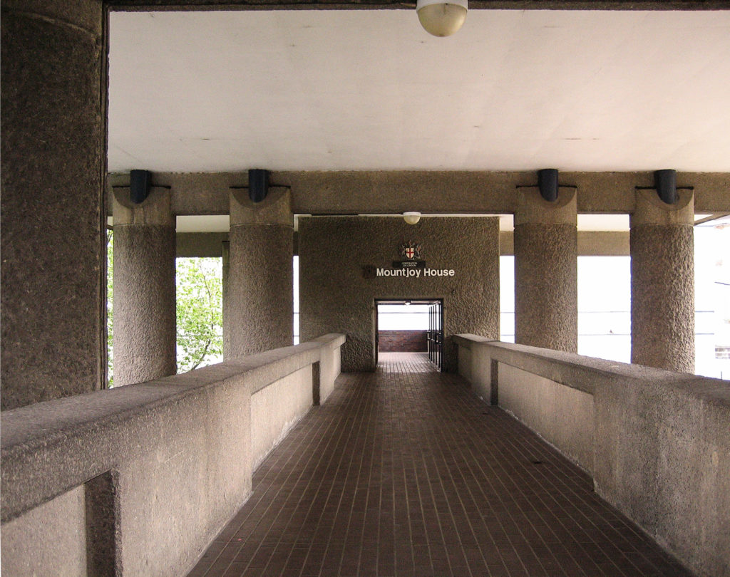 街の中の高架島としてバービカンが建設された当時、複合施設と他の地区を結ぶ高架歩道のネットワークが検討されたが、後に破棄された。 建築家のチェンバリン、パウエル&ボンは、自分たちが設計しているのは一連の建物ではなく、多数の出入り口を持つ地区全体であり、そのうちのいくつかは長年にわたって変更されてきたと主張した。