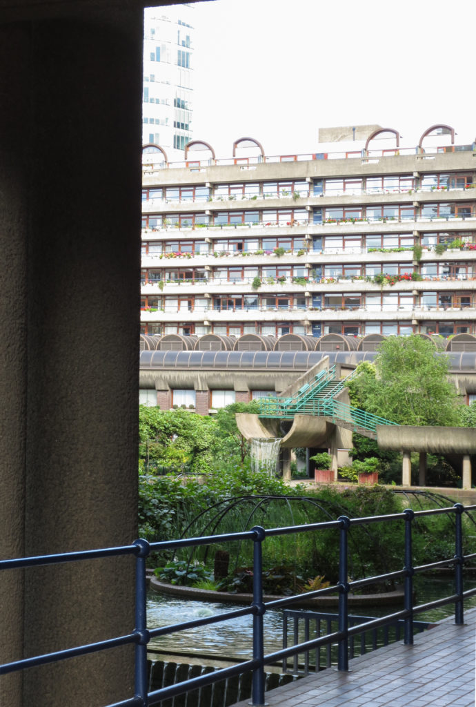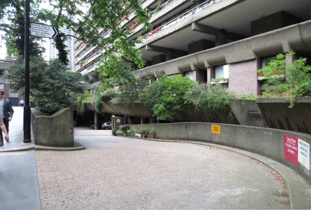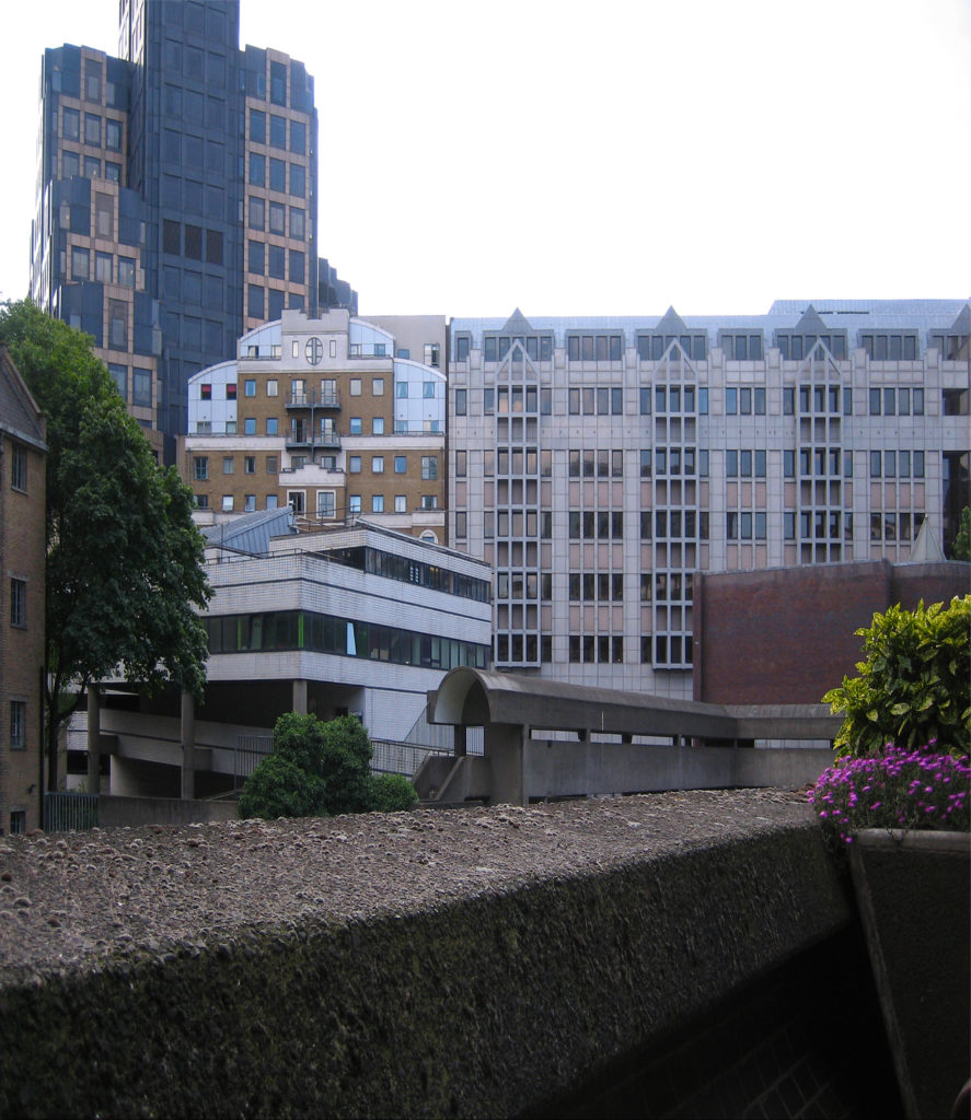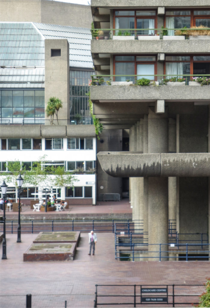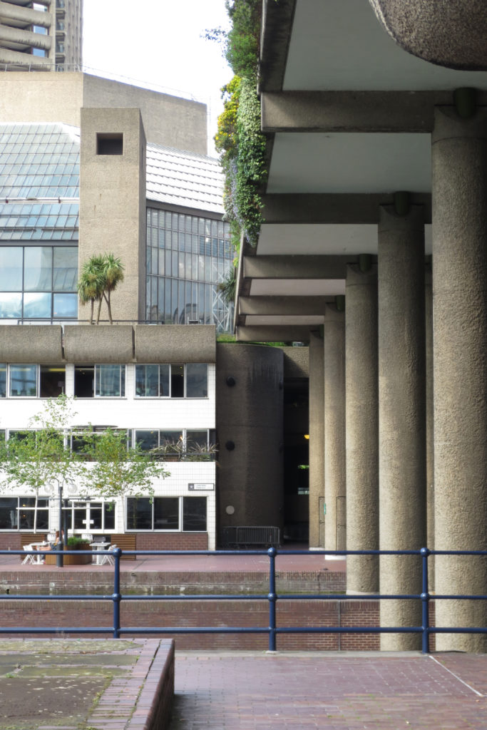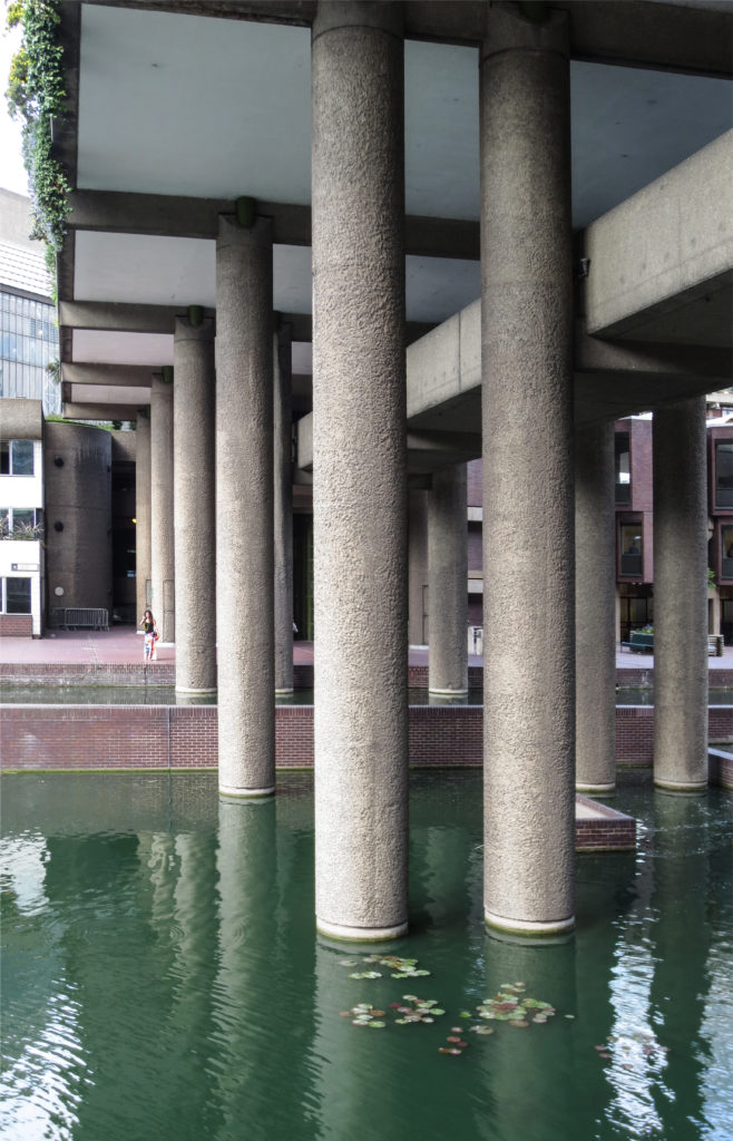 建物の下に広がる舗装されたテラスの連続性や、植栽や水辺がオープンスペースを繋ぎ、定義していることは、アンサンブルの統一性に大きく貢献している。 バービカンの南側にある建物の長いテラスに囲まれた主要なオープンスペースは、イギリスの首都の公園や広場でおなじみのように、芝生、森の木々、水の造園で壮大なスケールでレイアウトされている。