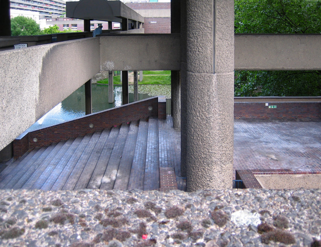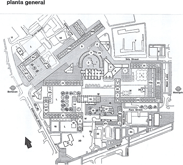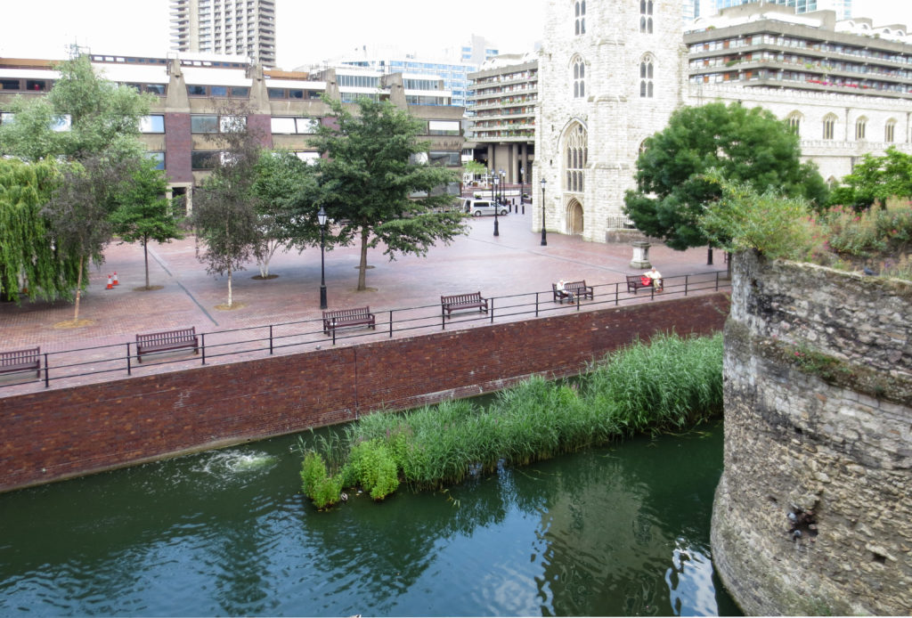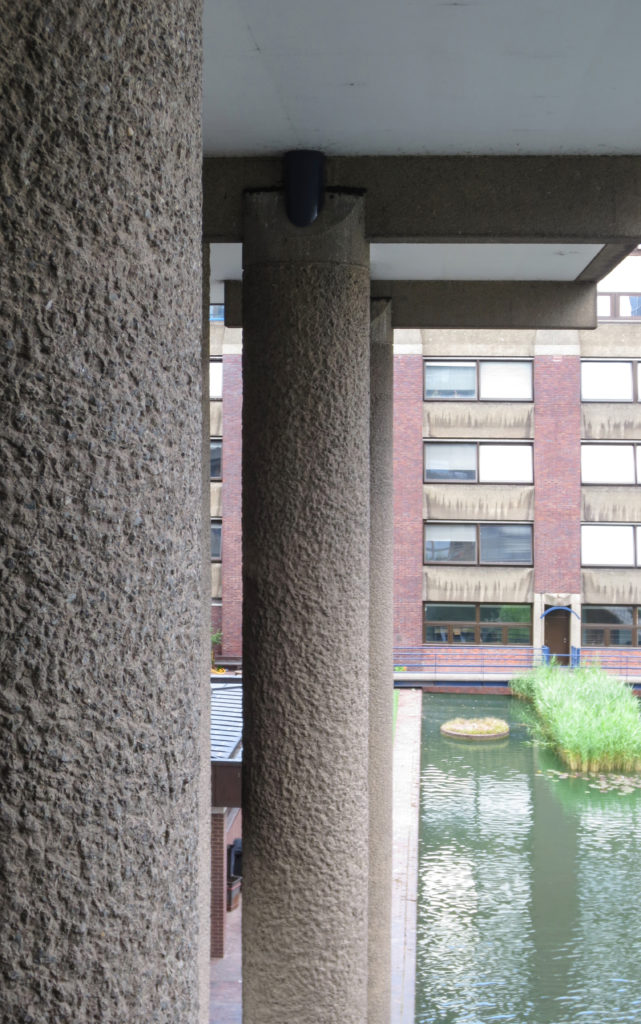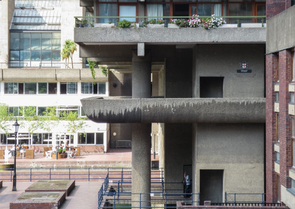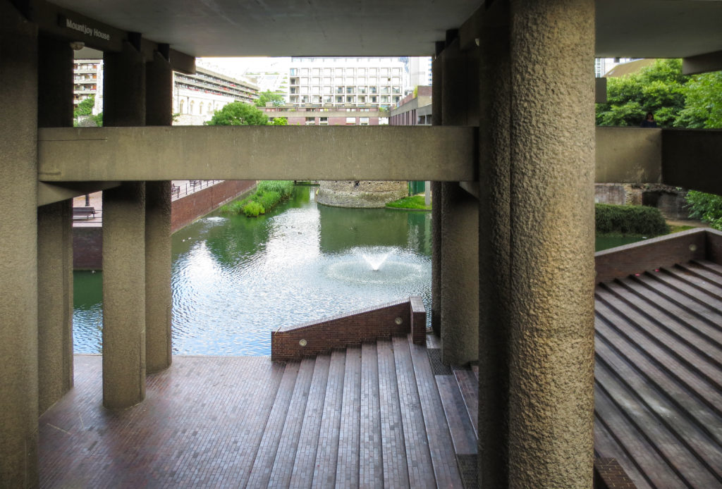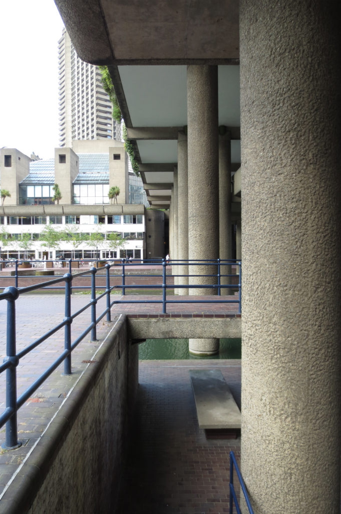 建物の下に広がる舗装されたテラスの連続性や、植栽や水辺がオープンスペースを繋ぎ、定義していることは、アンサンブルの統一性に大きく貢献している。 バービカンの南側にある建物の長いテラスに囲まれた主要なオープンスペースは、イギリスの首都の公園や広場でおなじみのように、芝生、森の木々、水の造園で壮大なスケールでレイアウトされている。