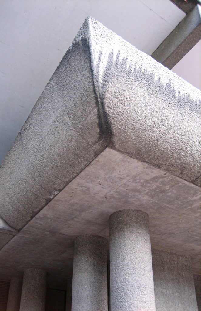 バービカンの構造は、基本的にコンクリートの建物で構成され、強固な柱とボアリングされた杭基礎の上にある。 この記念碑的な素材の使用は、建設方法として現場打ちの鉄筋コンクリートを選択したことで可能になった。