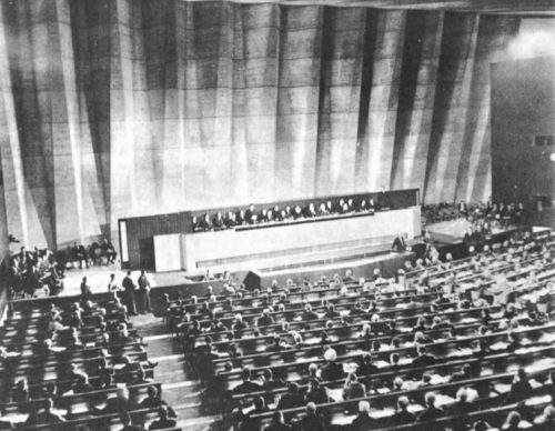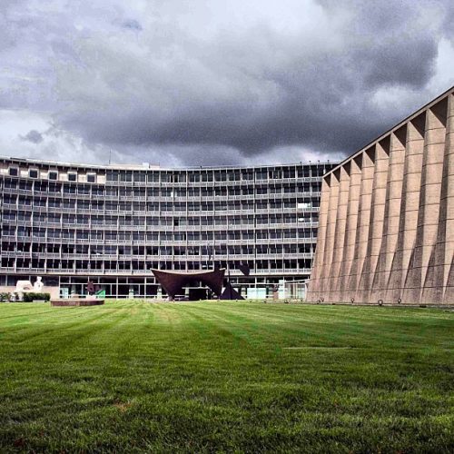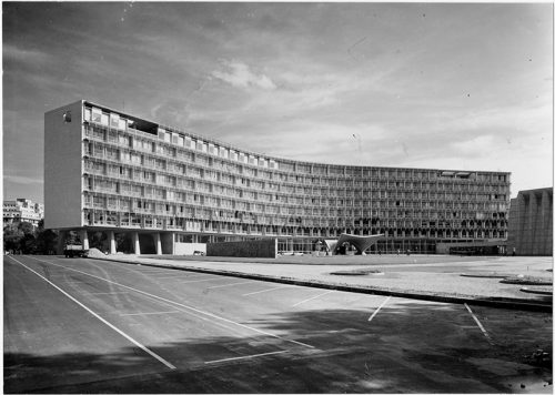 などの建築家を含む国際的な委員会の指揮の下で、このプロジェクトは実施された。 ルシオ・コスタ(ブラジル)、 ヴァルター・グロピウス(米国)、 ル・コルビュジエ (フランス), スヴェン・マルケリウス (スウェーデン)とエルネスト・ネイサン・ロジャース(イタリアこのY字型の本館は、同団体の本部としてだけでなく、その卓越した建築的資質でも国際的に有名である。