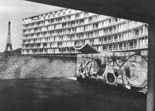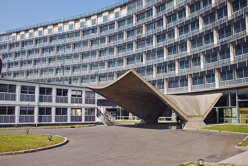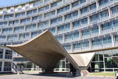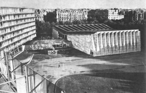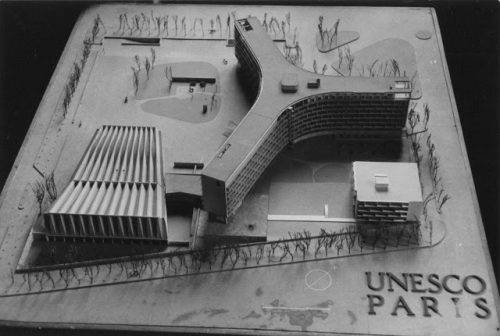パリのユネスコ本部ビルは、建築家マルセル・ブロイヤー(ハンガリー)、バーナード・ゼアフュス(アメリカ)、ピエール・ルイジ・ネルヴィ (イタリア)(後者は構造エンジニア)によって、1950年代の建築様式で設計された。 このプロジェクトには、ピエール・ルイージの息子アントニオ・ネルヴィとフィンランドの建築家イーロン・サーリネンも参加した。