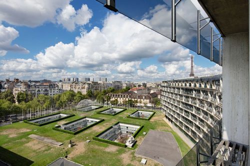 本社ビルは、フランス・パリ7区のフォントノワ広場に面し、セーヌ川を挟んでエコール・ミリテール、エッフェル塔、シャイヨー宮と歴史的な南北軸をなす、30,350m2の台形の敷地に建っている。 土地は北東の角で途切れており、広場の半円形に沿って、ザクセン通り、セギュール・ド・スフレン通り、ローエンダール通りに囲まれている。