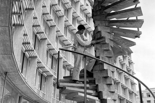 コンクリートの折れ曲がりと、挑戦的な形をした柱の輪郭は、ほとんど何でも要求できる素材の、自由なバリエーションのように見える。 事務局の72本の杭は、基部は細長い楕円形で内側に傾斜しており、上部はコンソールによって延長されている。