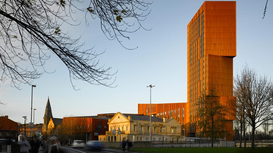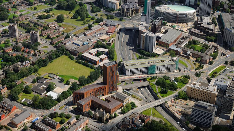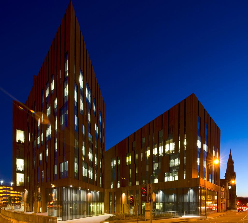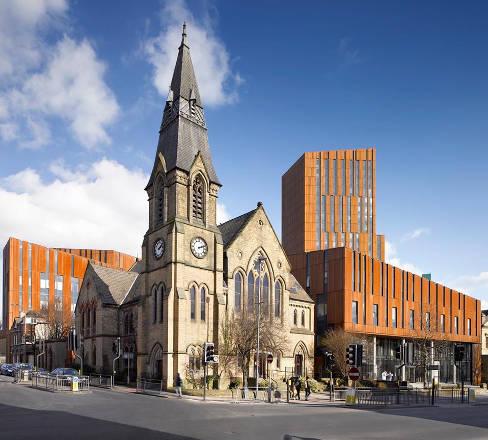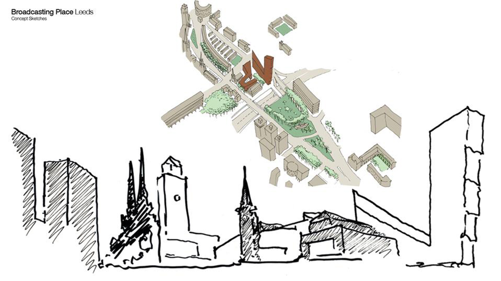 ブロードキャスティング・プレイスは、リーズ市の中心部に近い印象的な複合施設である。 ダウニング・プロパティ・グループとリーズ・ベケット大学の官民パートナーシップにより、23階建てのランドマーク的な建物に、約10219m2の新しいオフィスと教育スペース、240戸の学生寮が提供される。 新しいバプティスト教会がこの計画を完成させた。