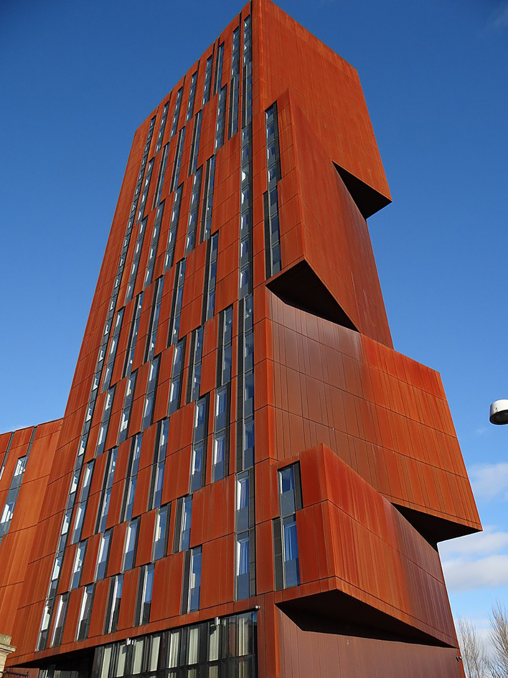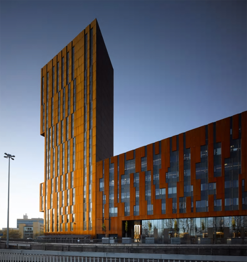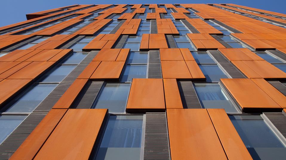 ファサードには主にコルテン鋼が使われ、スチールフレームと構造用断熱パネルシステム(SIPS)が採用されている。