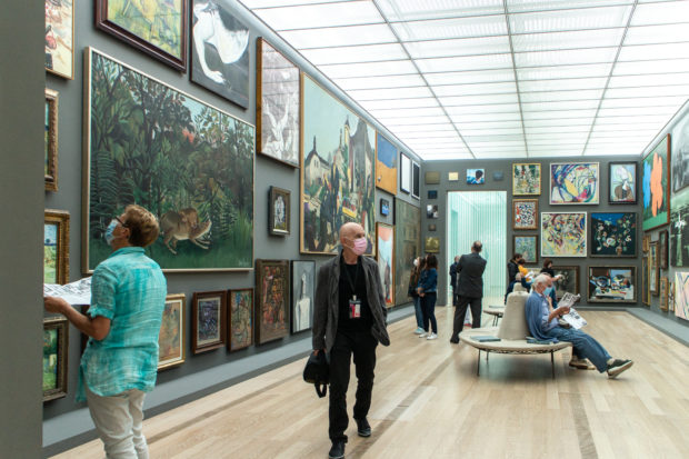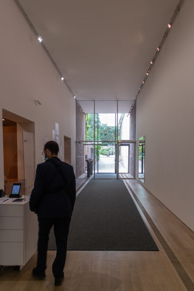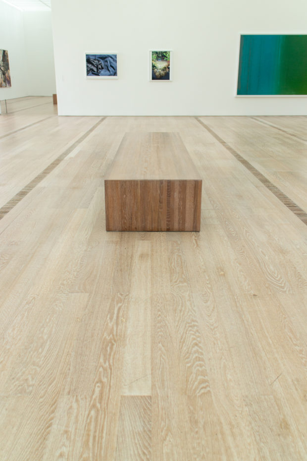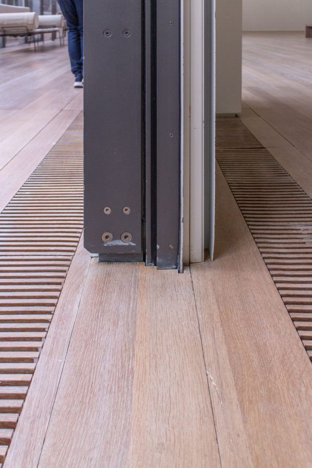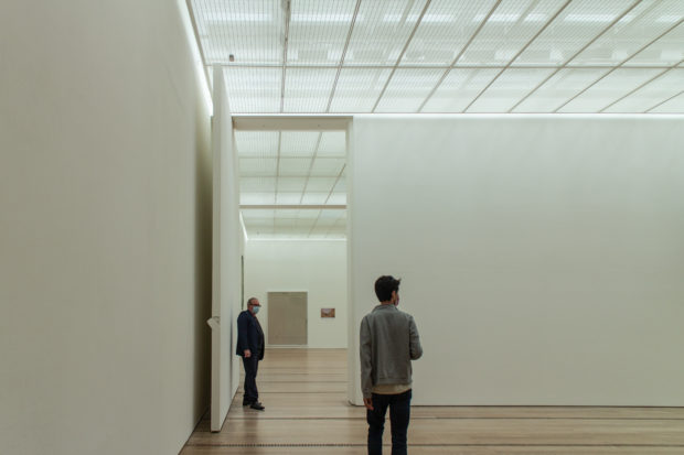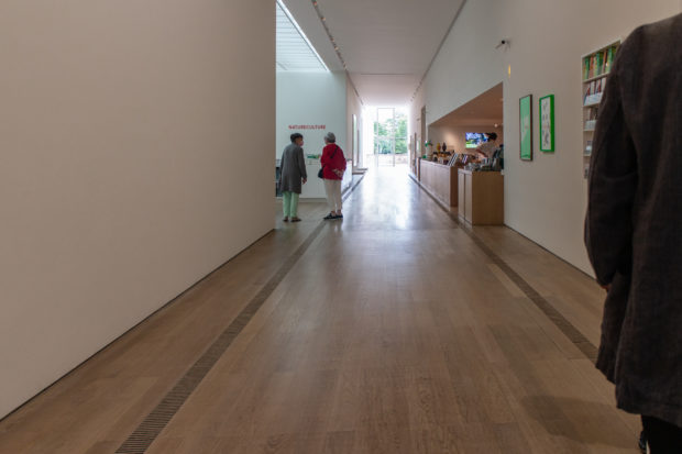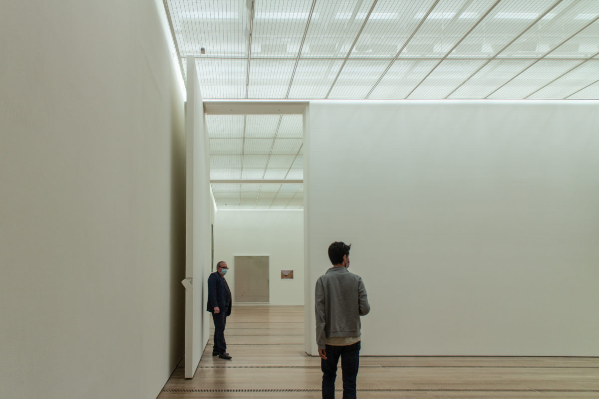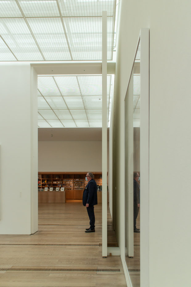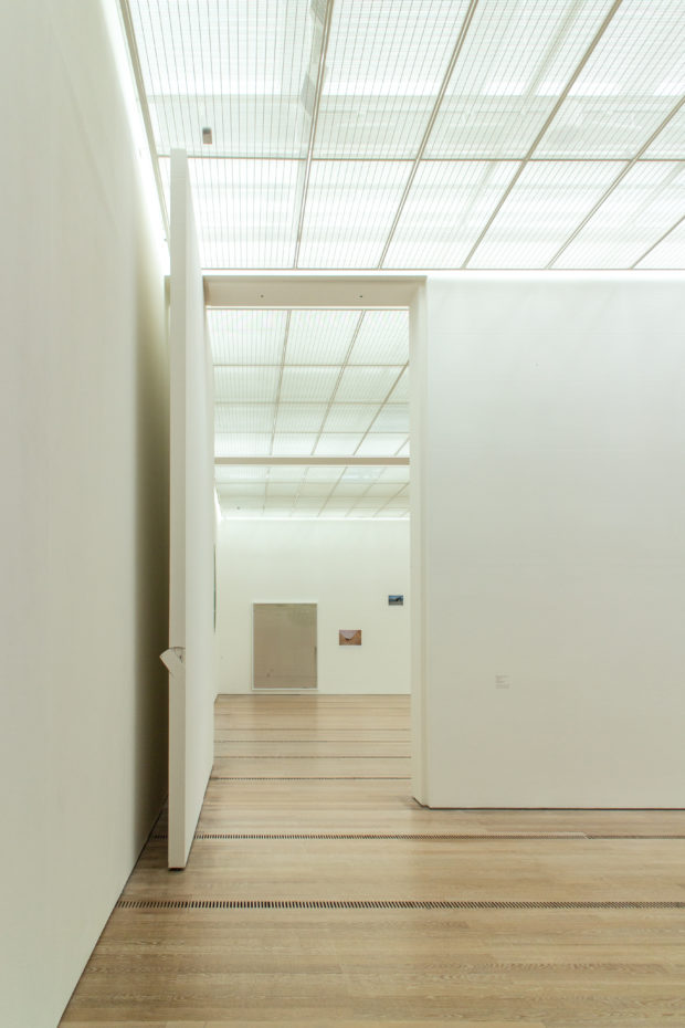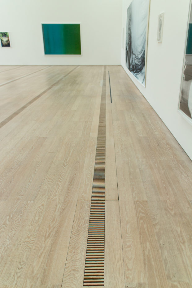 作品周辺の空気の流速を最小限に抑えるため、実排気量システムが設計された。 空気は、木製の床に特別に設計された直線状のグリルから、ほとんど知覚できない速度で放出される。 各ギャラリー・モジュールへの空気供給は、地下のサービス通路に設置された可変風量ボックスによって制御される。