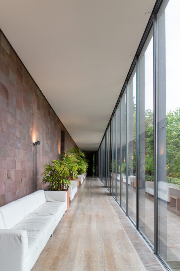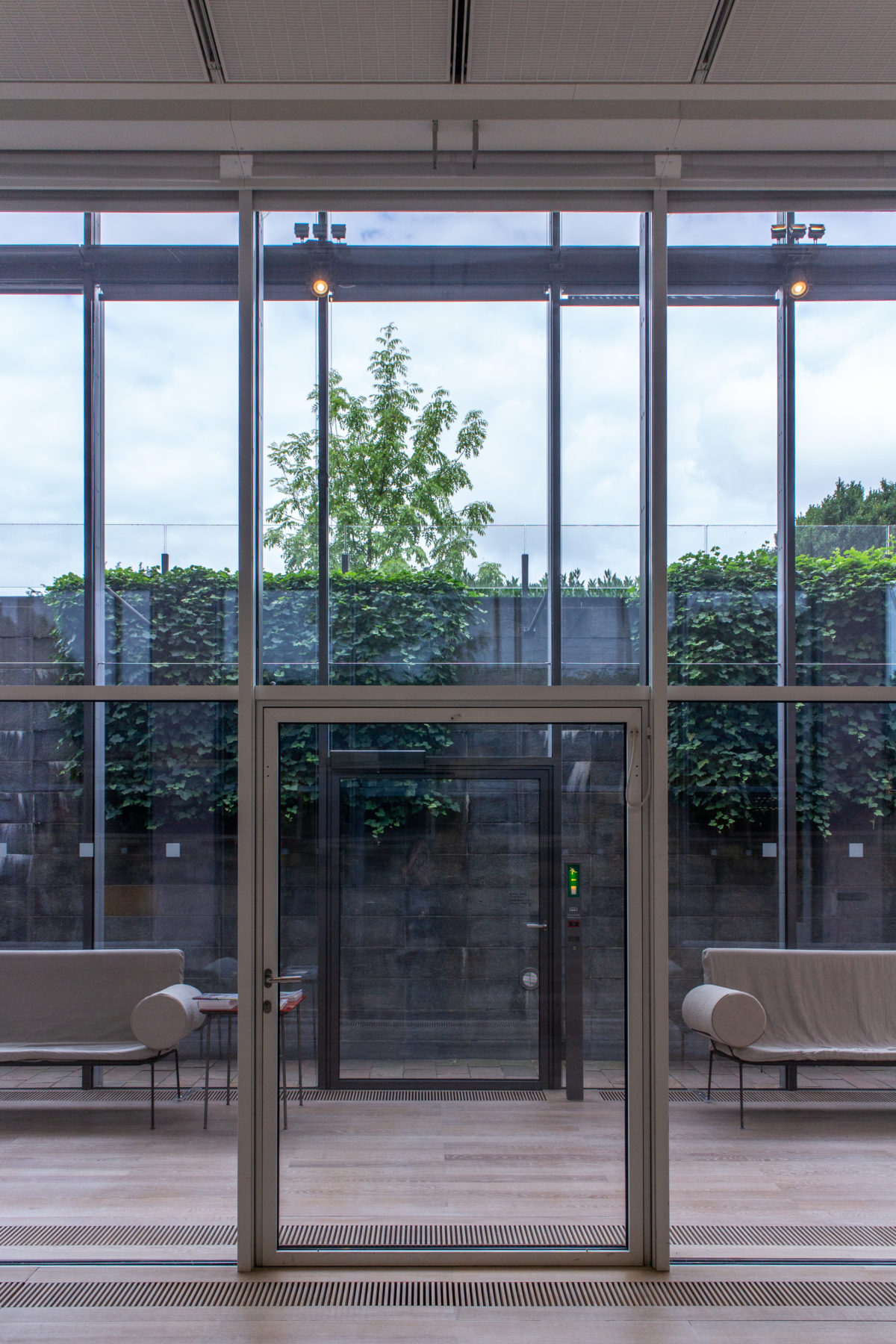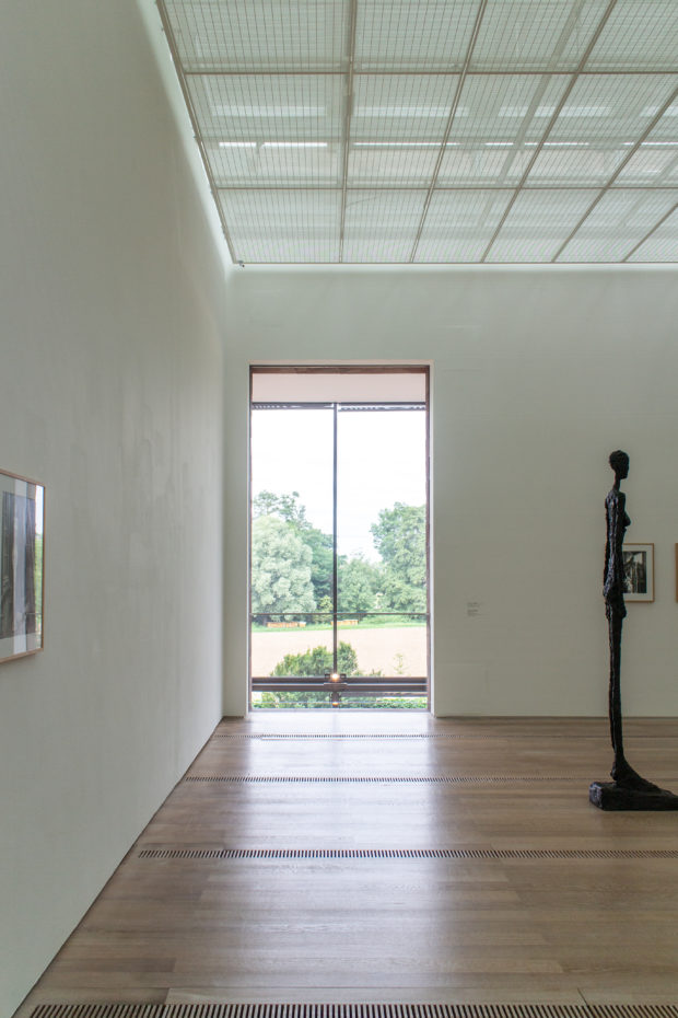美術館の内部空間は4つの横壁に沿って構成され、南北のギャラリーの端には、幅6.8m、高さ5mの床から天井までの窓がある。 この大きな窓は内部と外部をつなぎ、展示作品と周囲の風景との対話を成立させるのに役立っている。 美術館の西側には、ガラス張りの細長いウィンター・ガーデンがある。