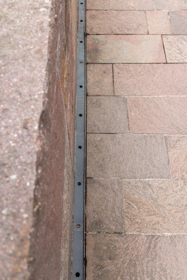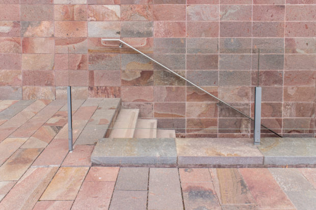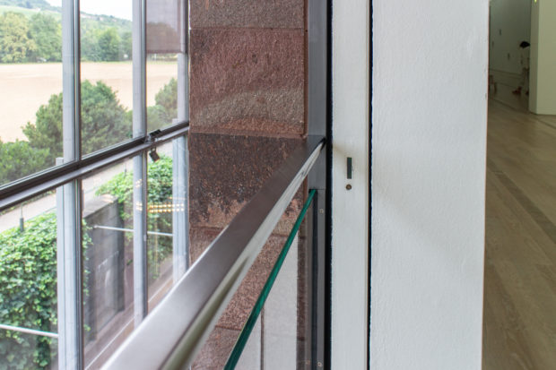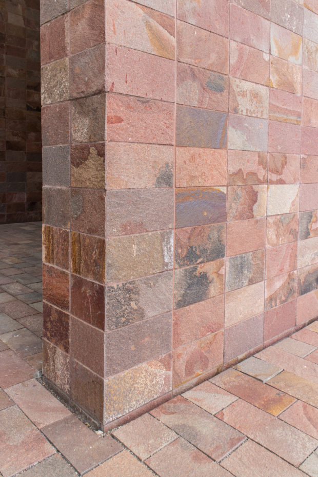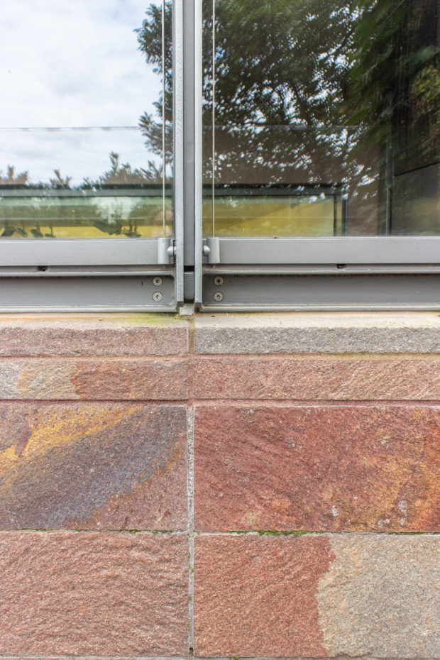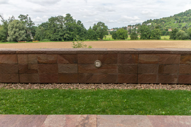 外壁と柱は鉄筋コンクリート製で、それらを覆う石と敷地を区切る石は、アルゼンチン・パタゴニアから持ち込まれたポーフィリーという切りっぱなしの石で、この地域の特徴である砂岩に非常によく似ている。 バーゼル新型は、少し硬く、メンテナンスの負担が少ないとはいえ。
