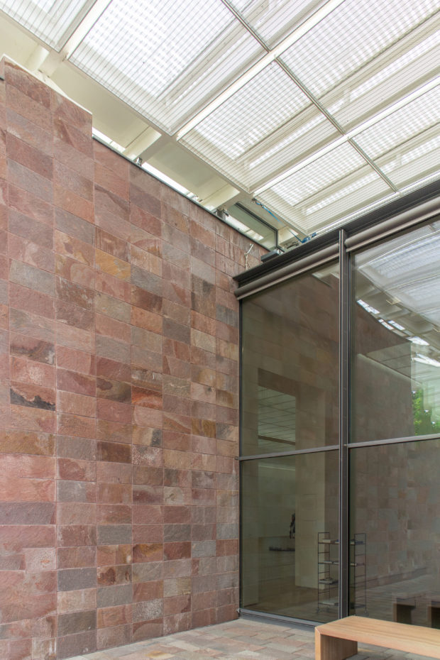 日照データを調査した結果、エンジニアは、ほとんどのヨーロッパの美術館の約2倍である4%の日照率を目標とし、光量を所定の範囲内に保つためのアクティブ・シェーディング・システムを推奨した。 この目的は、すべてを覆う多層構造のガラス屋根によって達成され、北側は日光を取り込み、東と西は遮る。
