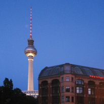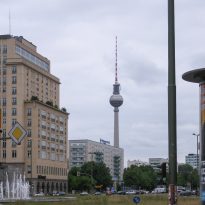 遠くには、街のスカイラインの上にそびえ立つタワーが見える。 何十年もの間、東ドイツ政府によって社会主義の象徴のひとつとして賞賛されてきた。 1989年の壁崩壊後は、統一ドイツの新たな中心地となったベルリンを象徴するユニークなモニュメントとなった。