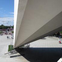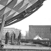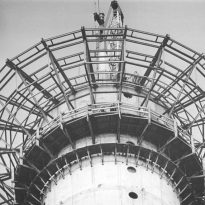 最大直径32m、最小直径8mの球体は、プレハブで作られたセグメントを地上で組み立て、クレーンで200mの高さにあるコンクリート・シャフトの端まで吊り上げる鋼鉄製の骨組みで作られた。
